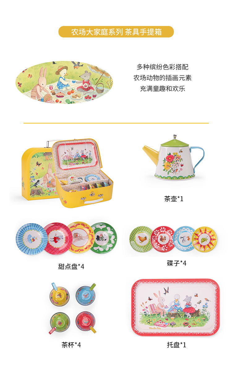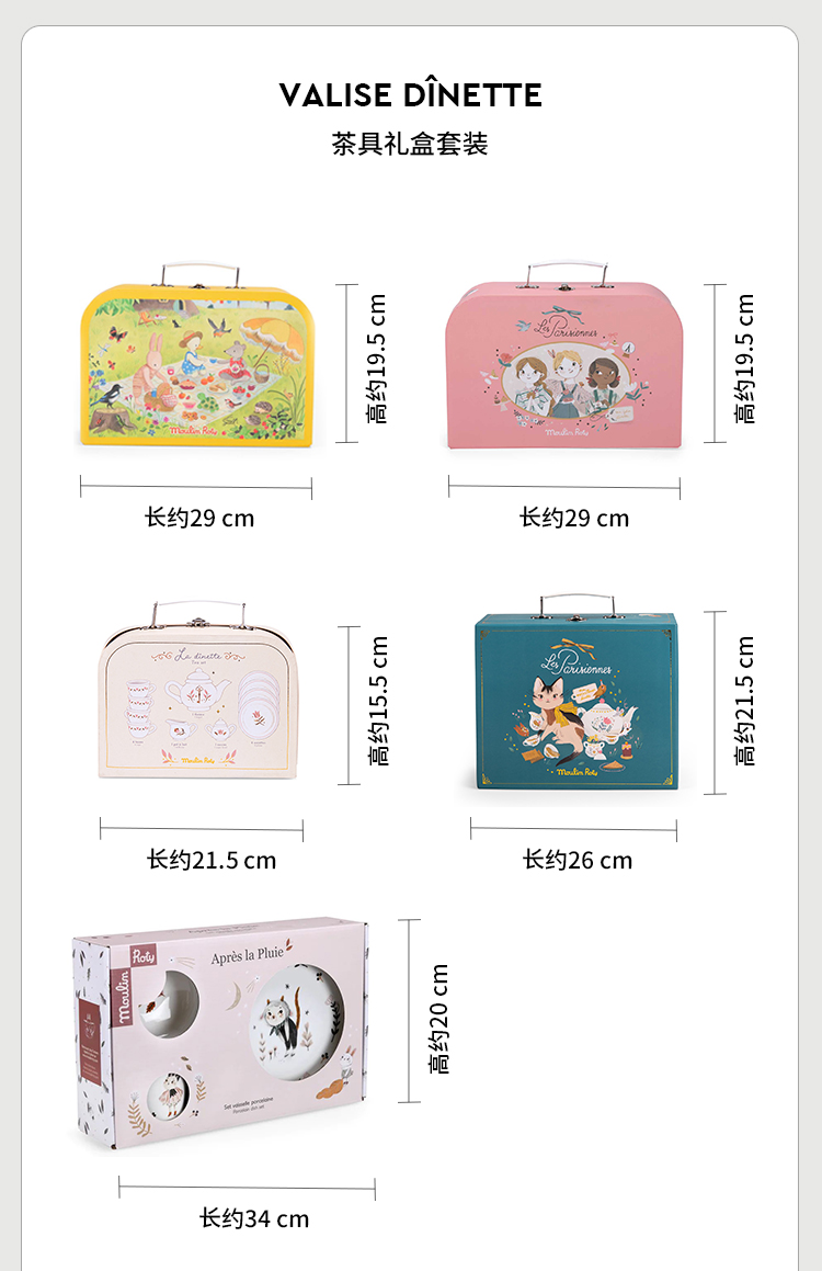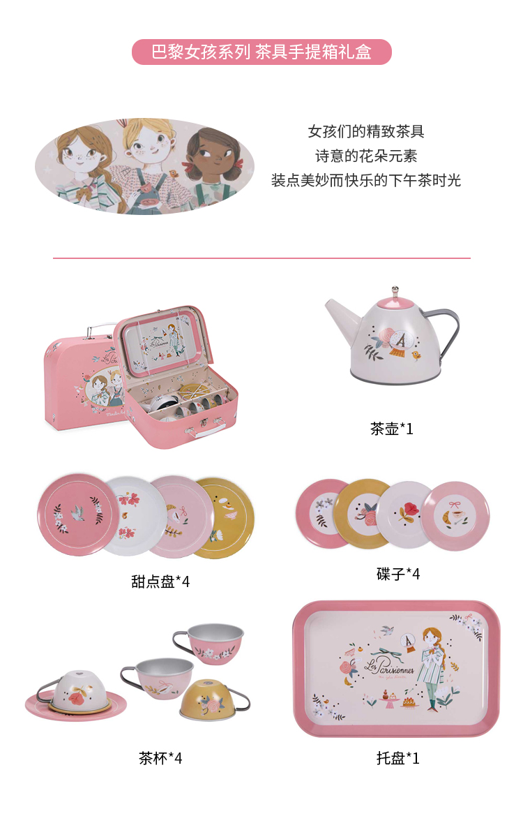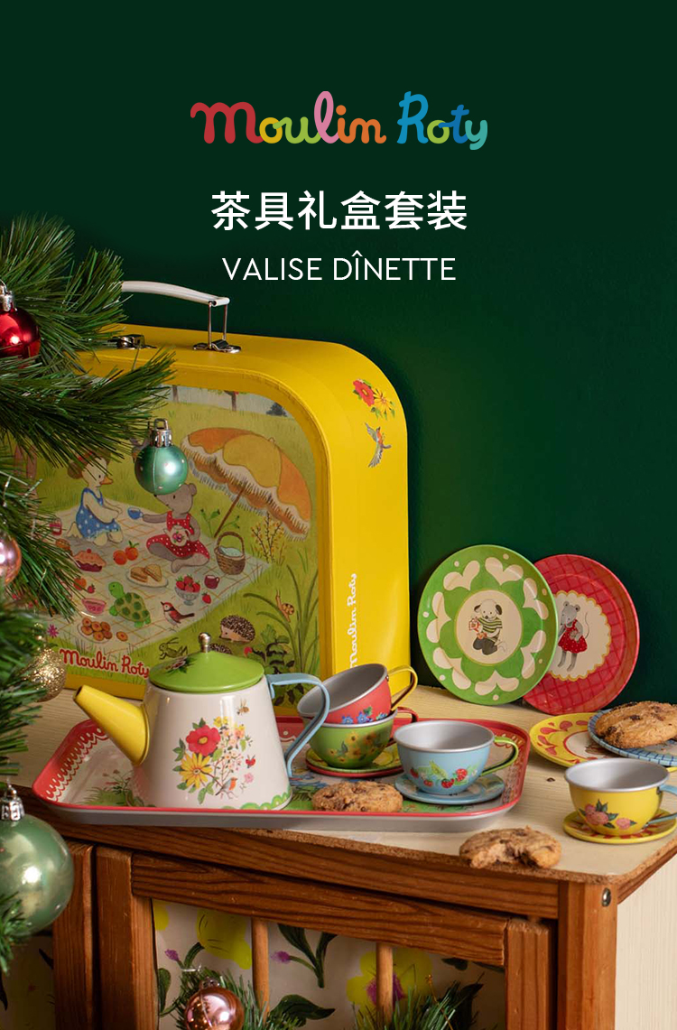 Moulin Roty 花朵女孩-马口铁茶具套装 手提箱 适合3岁+ 精美装饰 过家家玩具 花朵女孩系列 法国品牌-710538