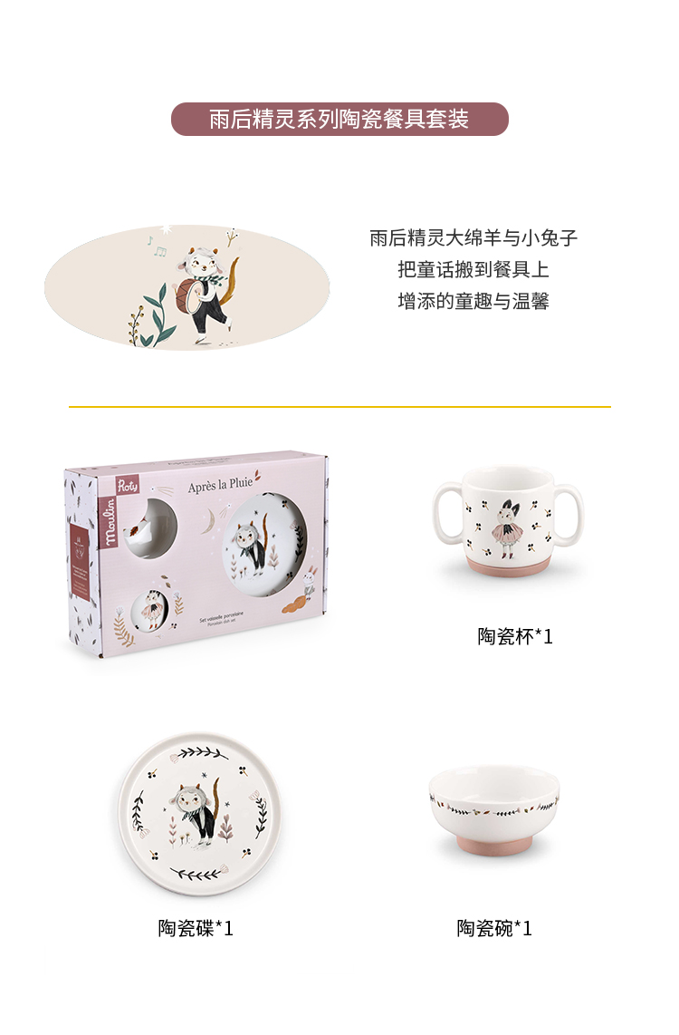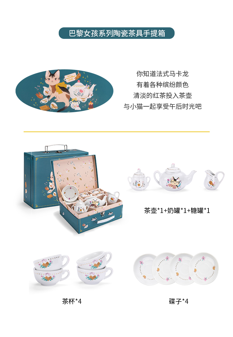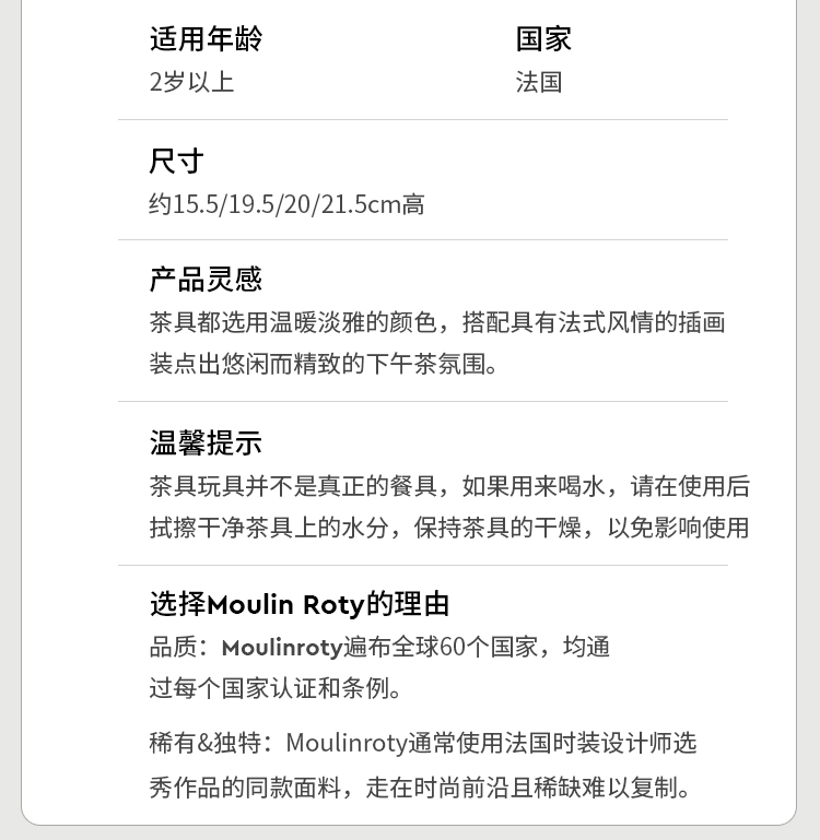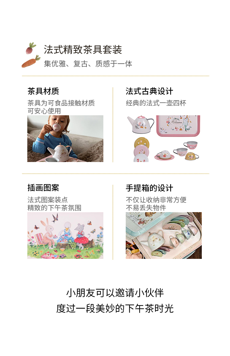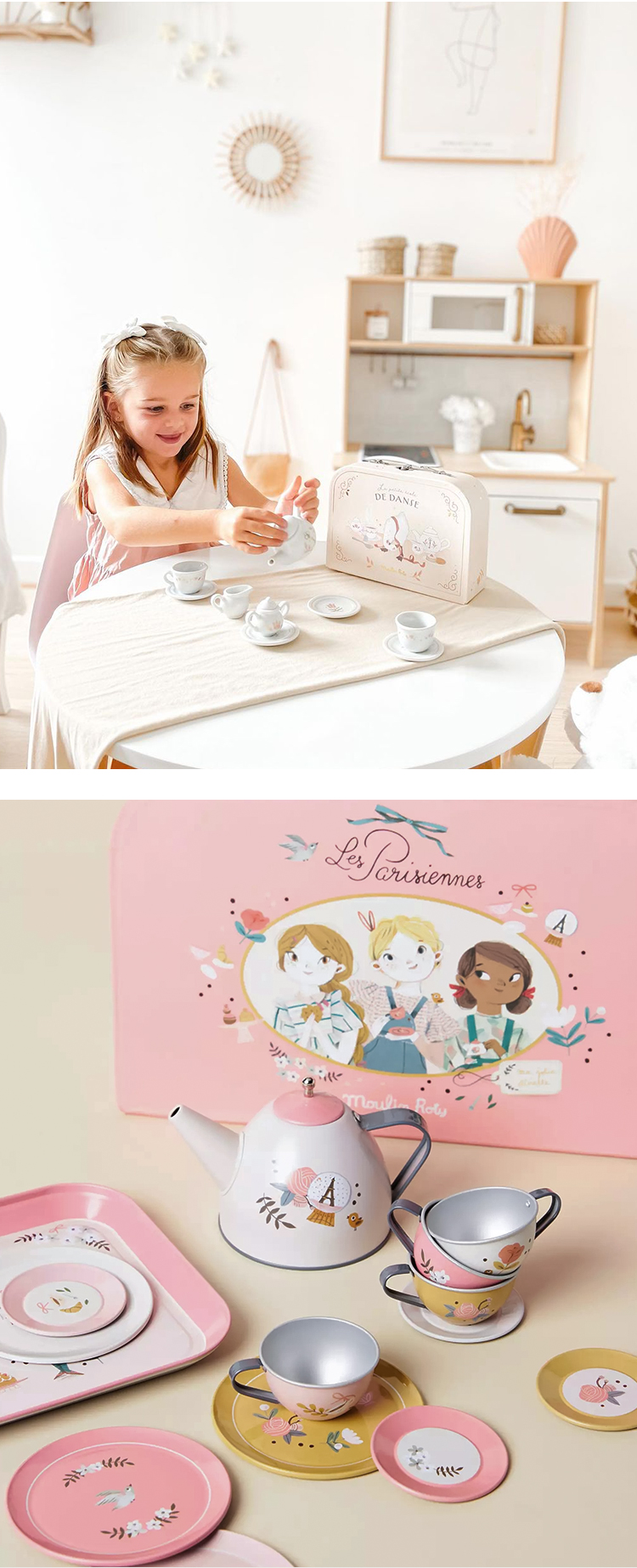 Moulin Roty 花朵女孩-马口铁茶具套装 手提箱 适合3岁+ 精美装饰 过家家玩具 花朵女孩系列 法国品牌-710538