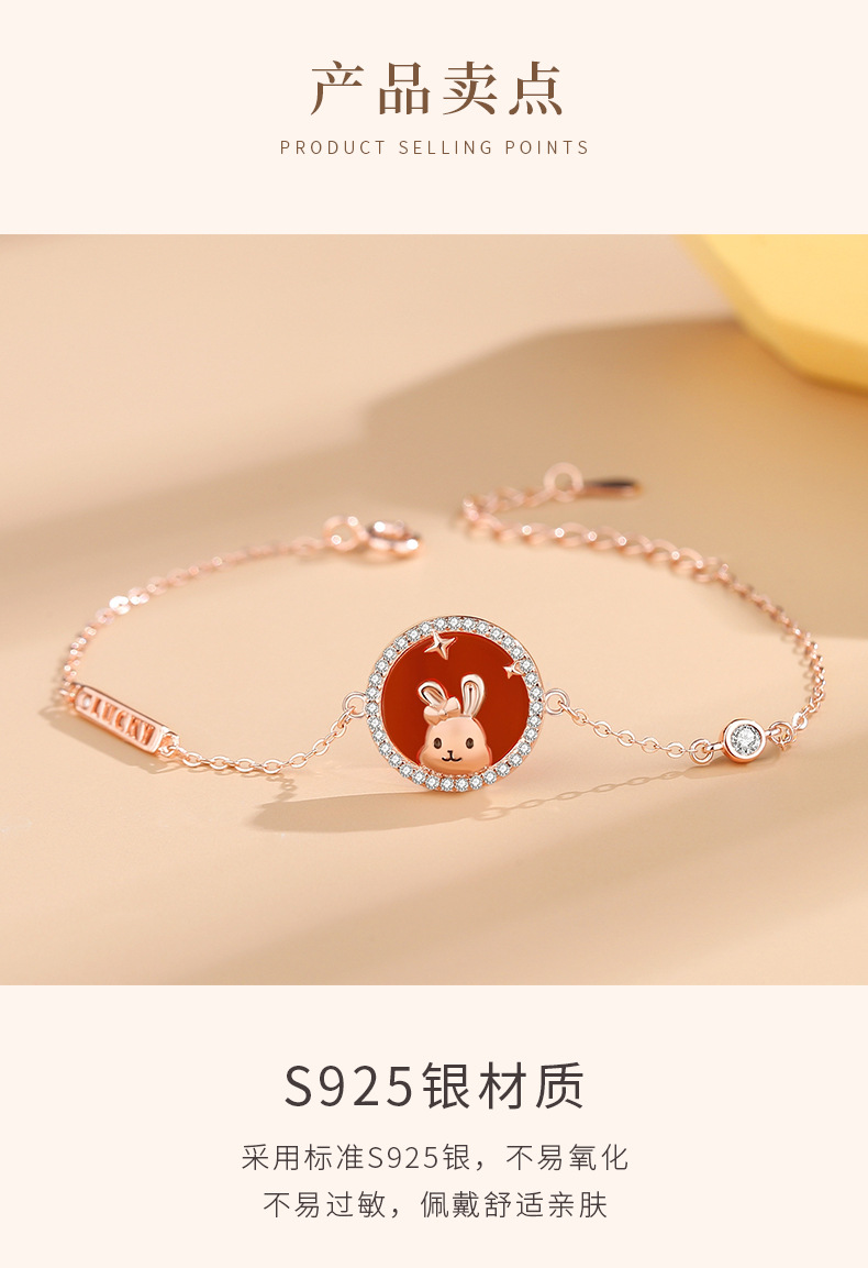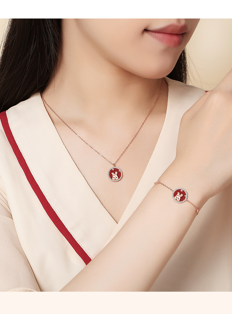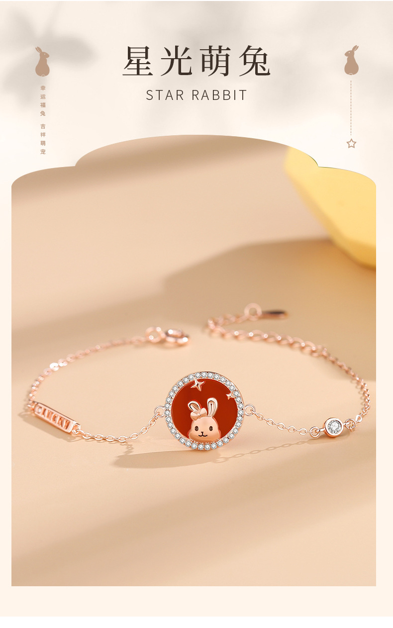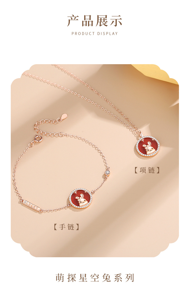 【授权商品】BOMURNNY/宝慕尼 S925纯银星光萌兔兔子兔年限定项链手链两件套