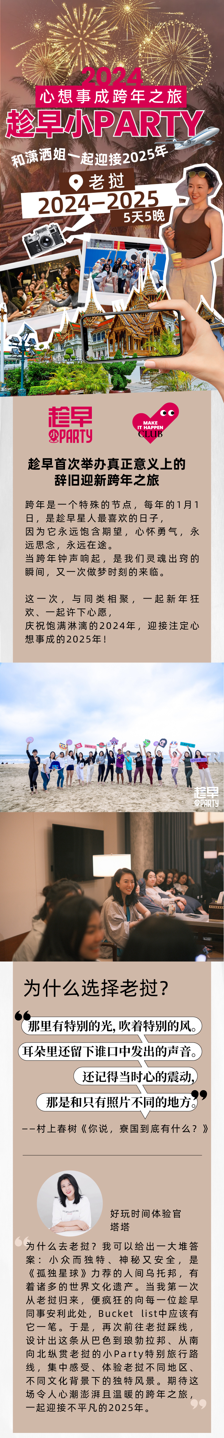 最后1天招募余1位【趁早首次跨年之旅】和潇洒姐一起迎接2025年!12月30-1月3 5天5晚