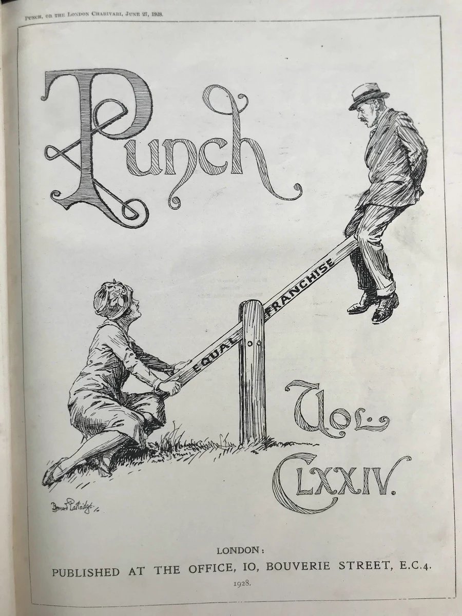 1928年1-6月 英国讽刺漫画杂志《笨拙》(含多幅彩色) 漆布精装16开