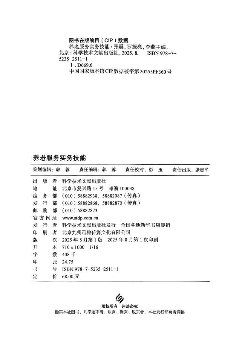 养老服务实务技能 张震 罗振亮 李燕 主编 供普通高等教育养老服务管理相关专业使用 9787523525111 科学技术文献出版社