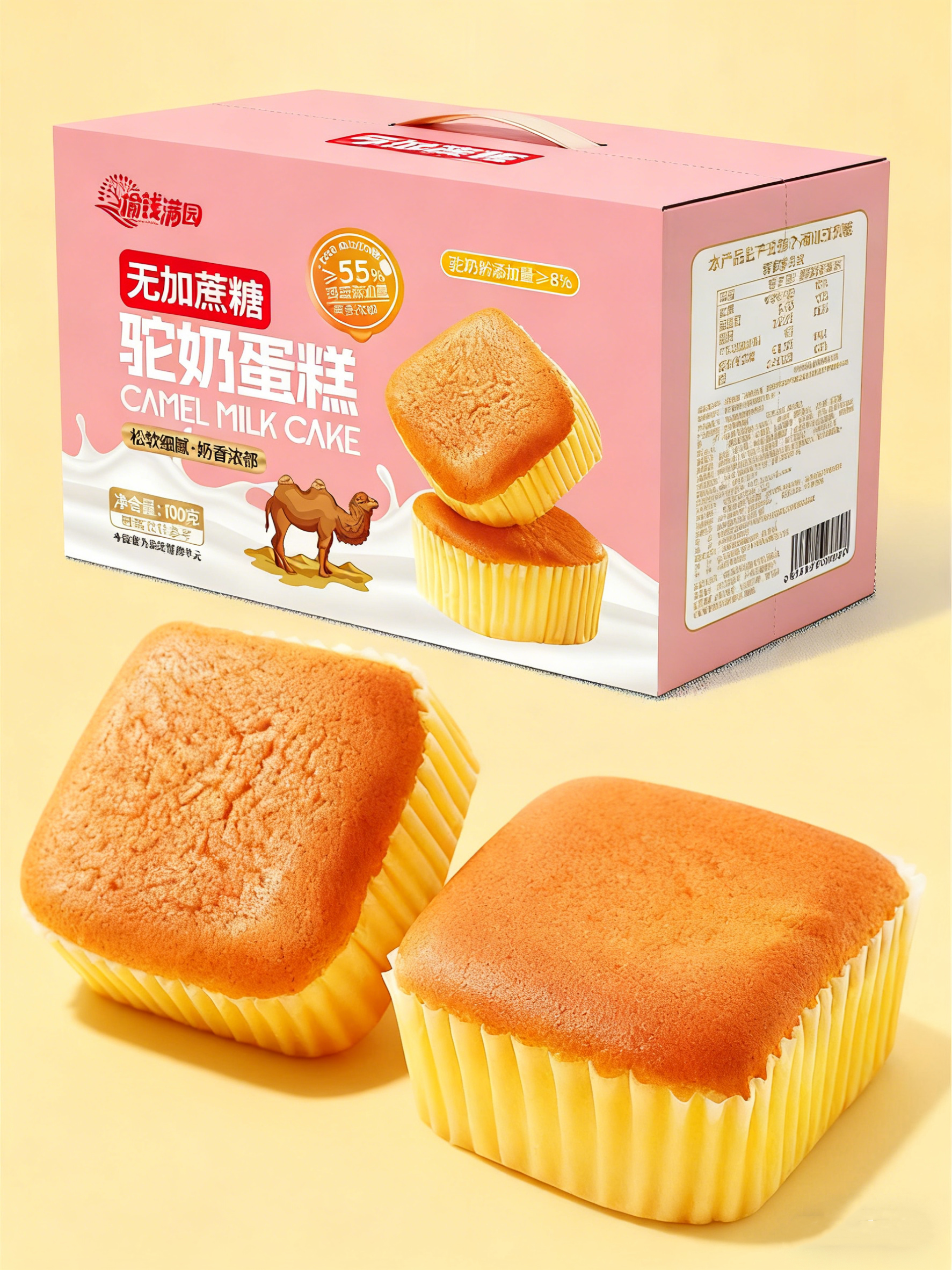 【2箱减10元】无蔗糖驼奶蛋糕 55%鸡蛋+8%驼奶 海藻糖替代蔗糖 Q弹松软 入口即化 700克/箱