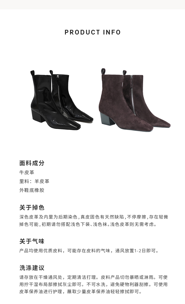 HIDEMI【赵丽颖同款】经典方尖头系列切尔西厚底方跟短靴踝靴