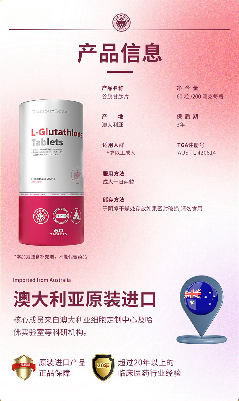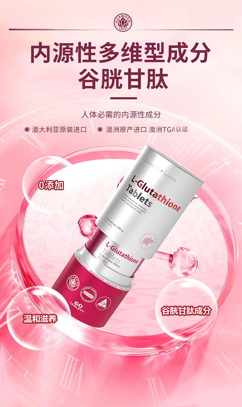 ⁵近效清99元2瓶【澳大利亚】谷胱甘肽白白丸 每粒含200mg还原型谷胱甘肽60粒/瓶 效期26年9月YY05-QTT-JN
