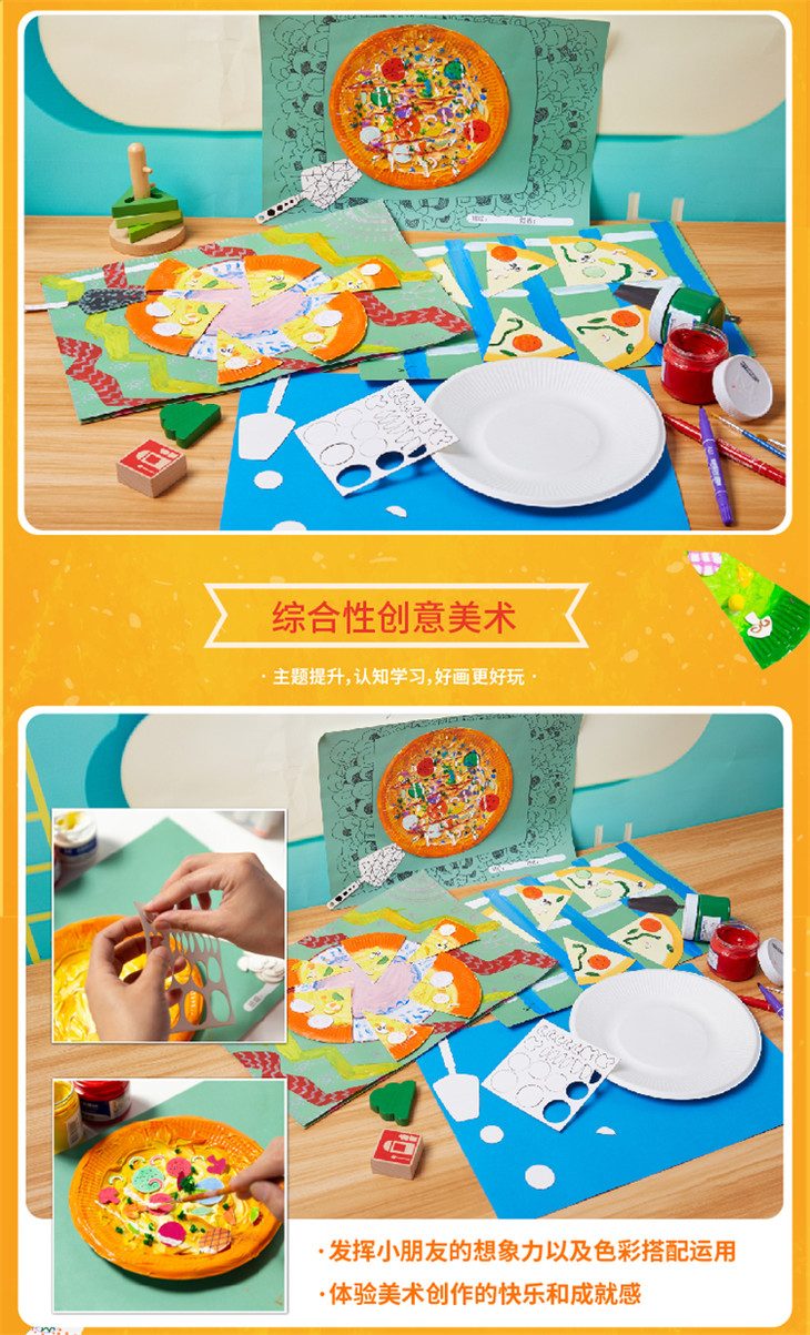 美味的披萨 儿童手工diy制作材料包幼儿园涂色绘画插卡创意贴画