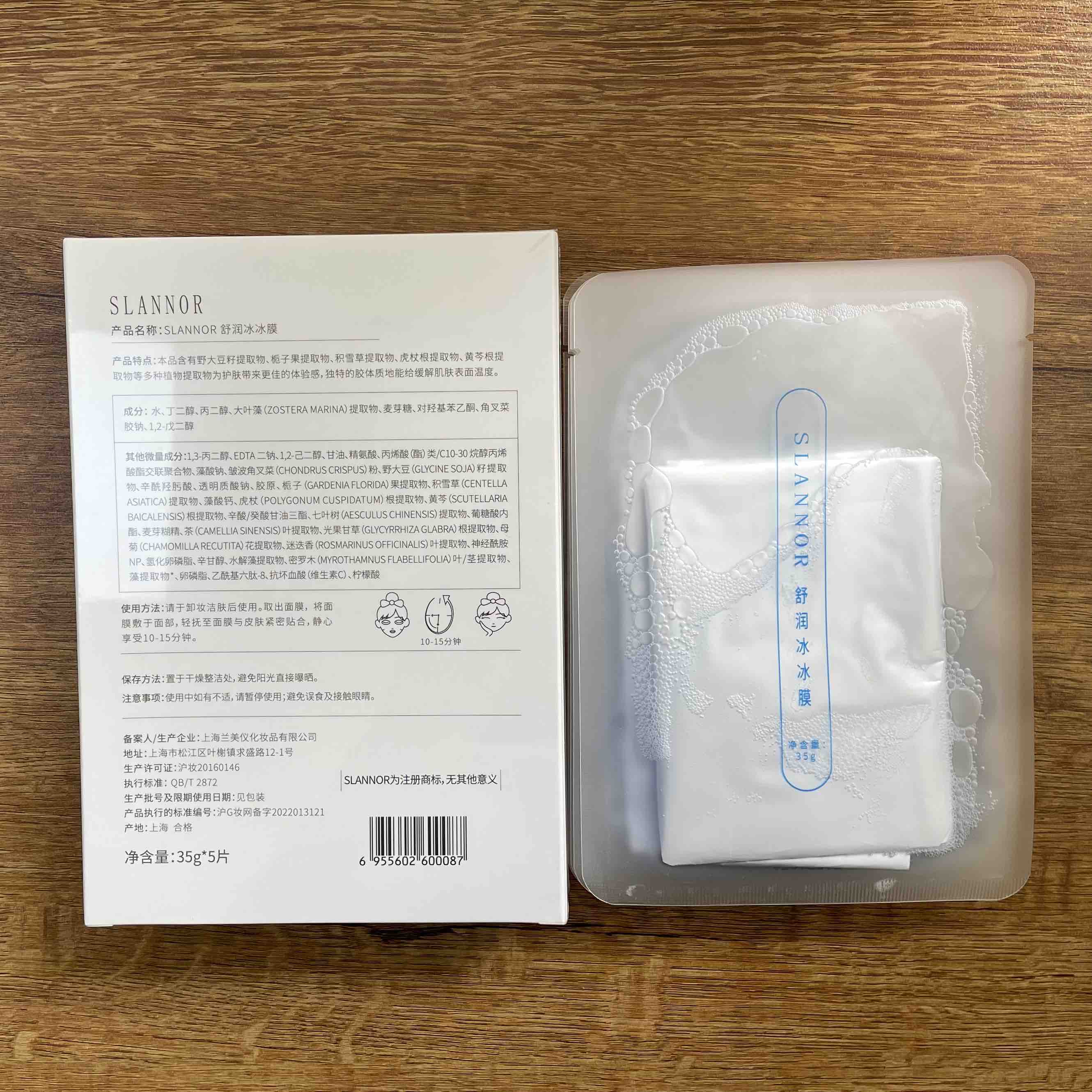 【补水急救维稳面膜组合】十余年口碑海藻胶舒润冰冰膜五片盒装 自家创新专利海藻多糖体成膜 上脸30-60分钟,旅游出行长时间户外必备:海藻胶蓝是来自栀子果提取