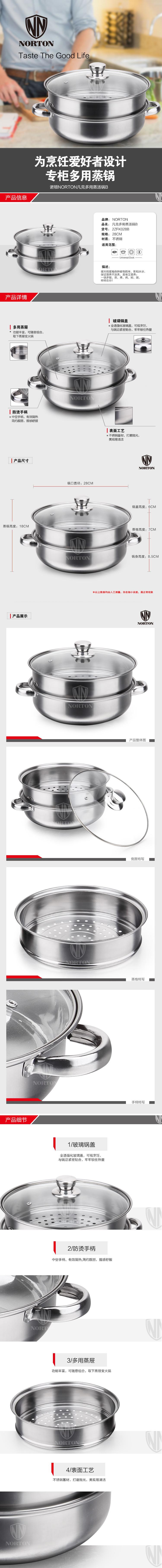 【会员价:78元】广电优选 诺顿NORTON 凡克多用蒸汤锅B家用多层煲汤锅蒸锅蒸格蒸笼蒸屉带玻璃盖燃气电磁炉通用 28cm(2ZFK028B)