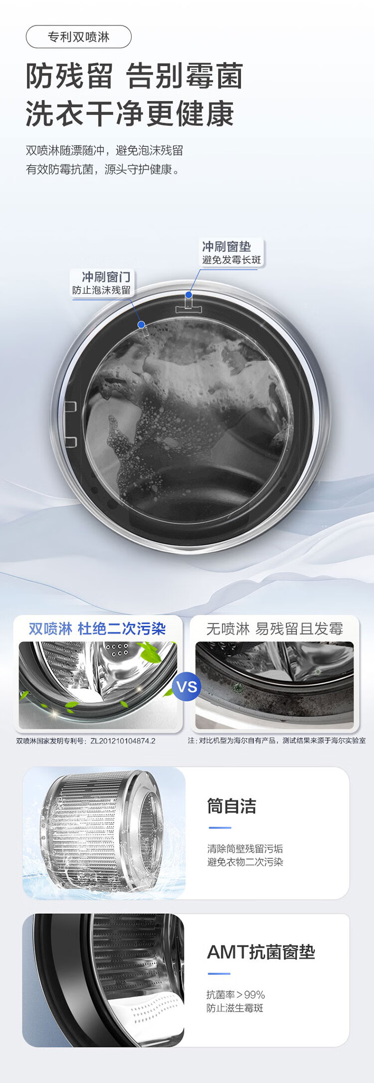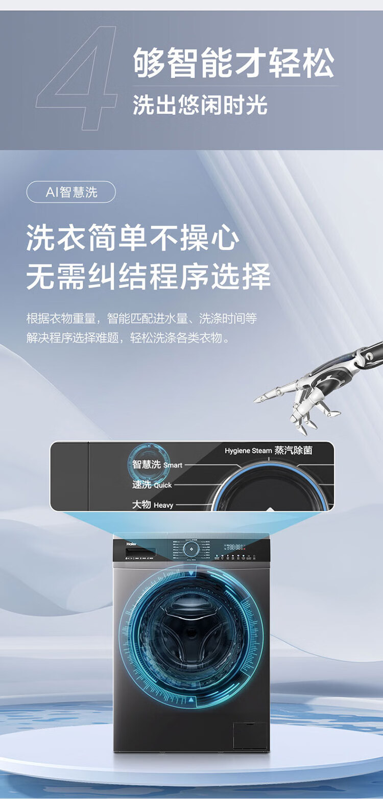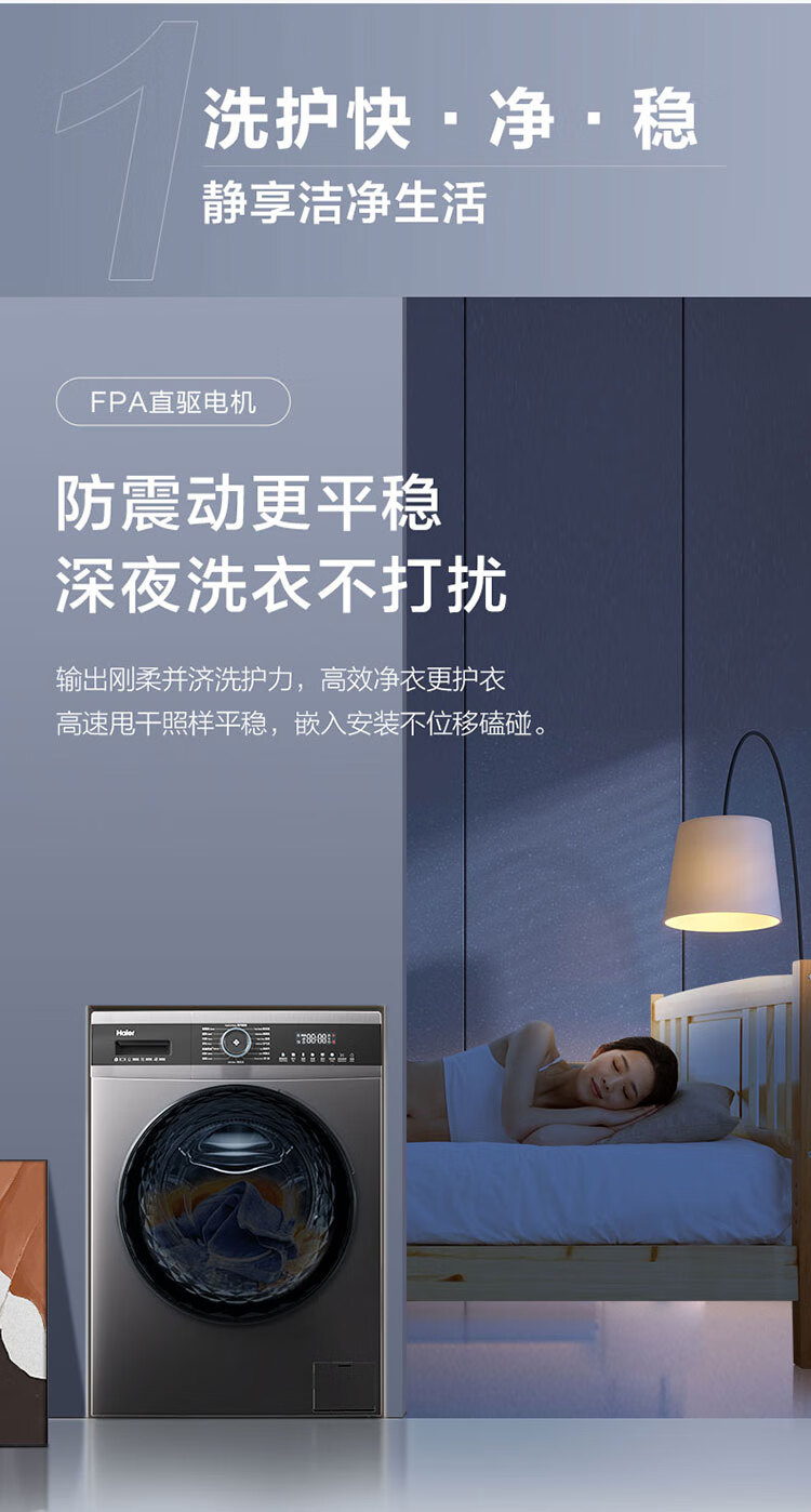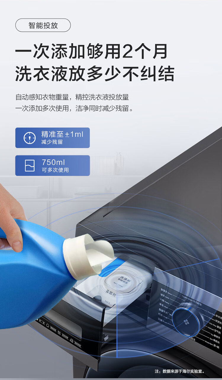 海尔(Haier)滚筒洗衣机全自动 10公斤洗烘一体机 直驱变频防震动 智能投放 空气洗除菌螨 EG100HMATE71S