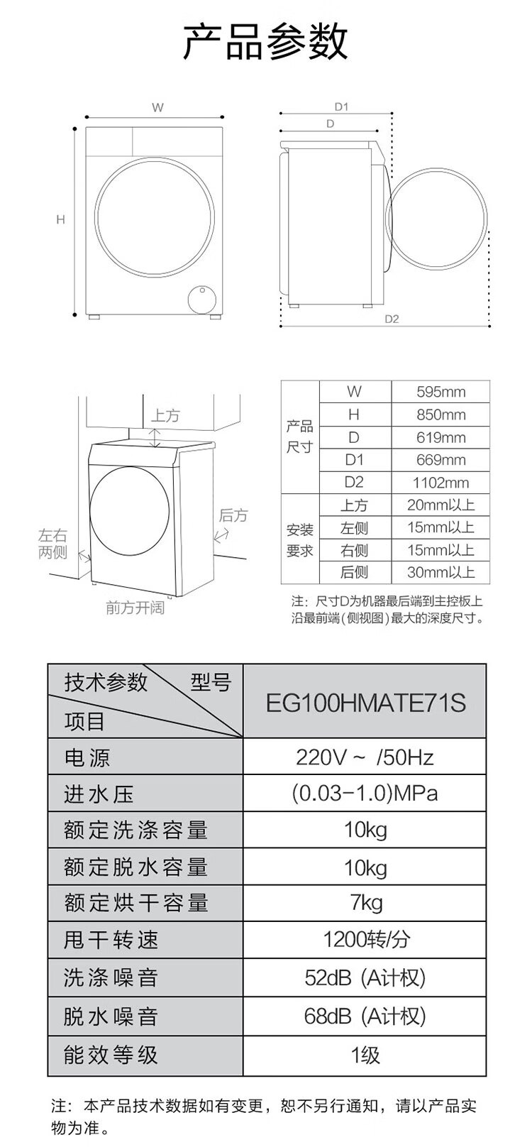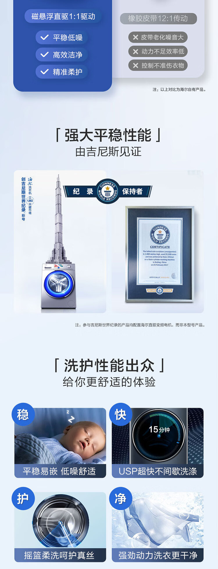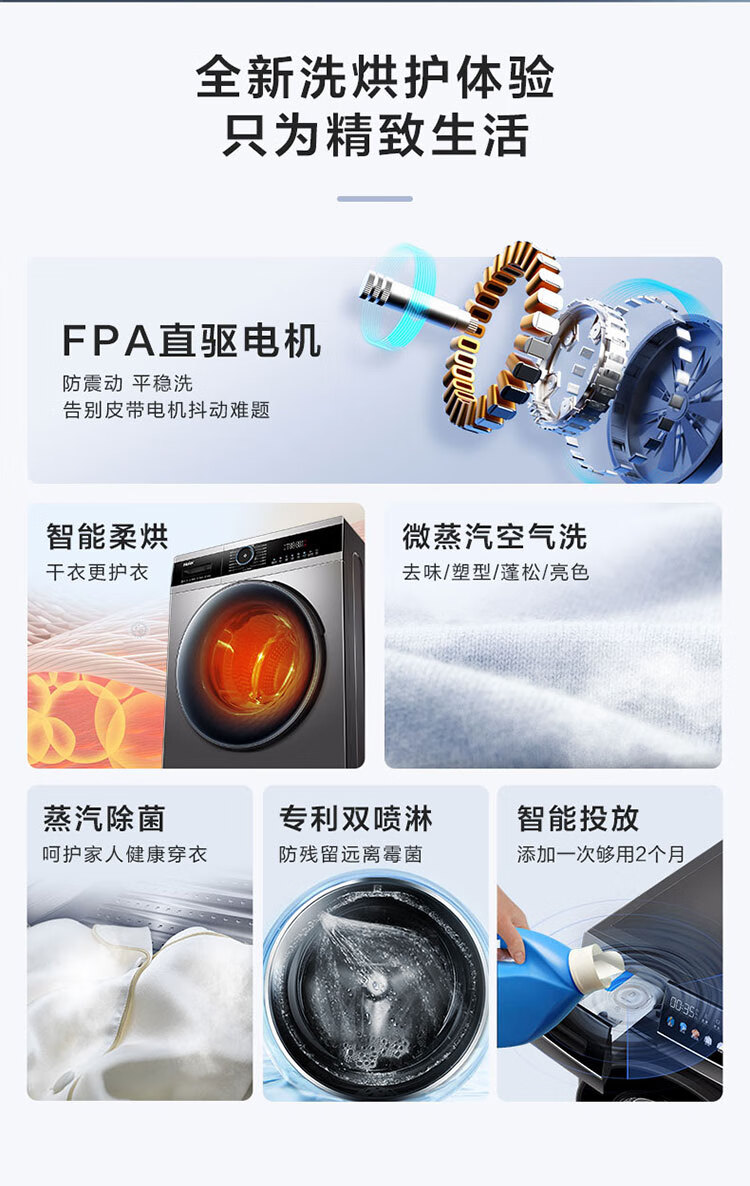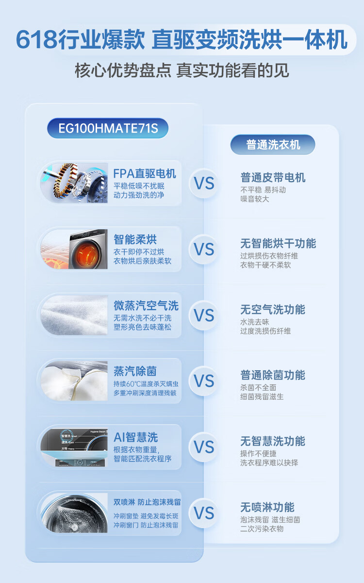 海尔(Haier)滚筒洗衣机全自动 10公斤洗烘一体机 直驱变频防震动 智能投放 空气洗除菌螨 EG100HMATE71S