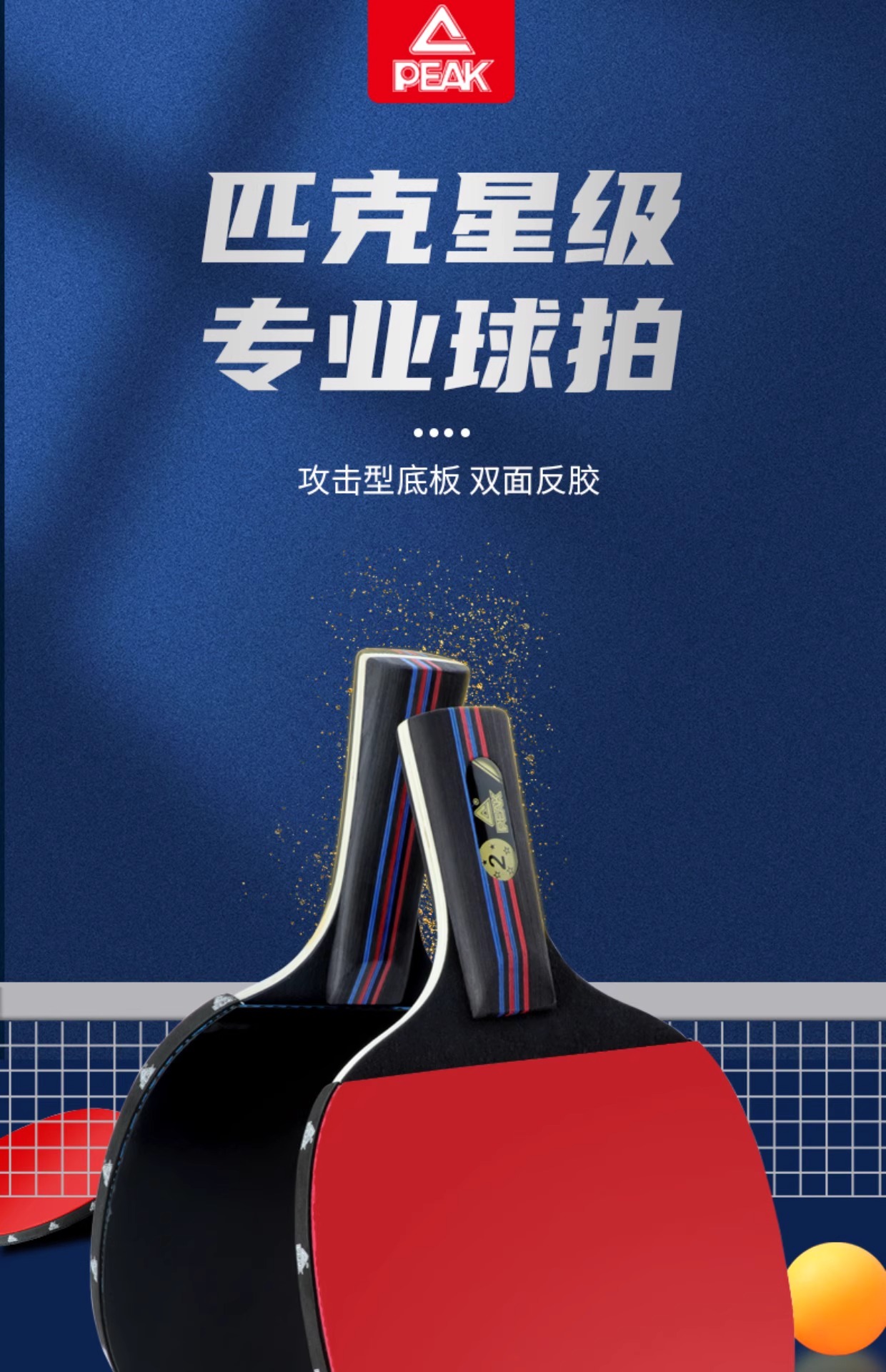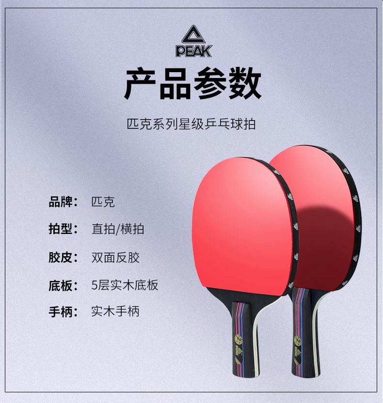吴磊代言!【2拍送拍包和5个球】 PEAK/匹克乒乓球拍双拍初学者儿童成人星级专业训练比赛横拍直拍