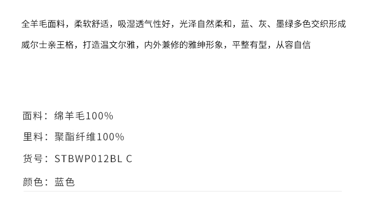 callisto蓝色全羊毛西裤 STBWP012C
