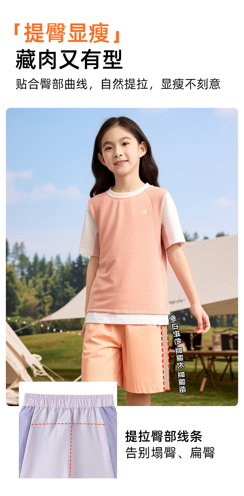 龙之涵26年夏季新机能风拼色短裤H2607女童男童休闲透气时尚运动