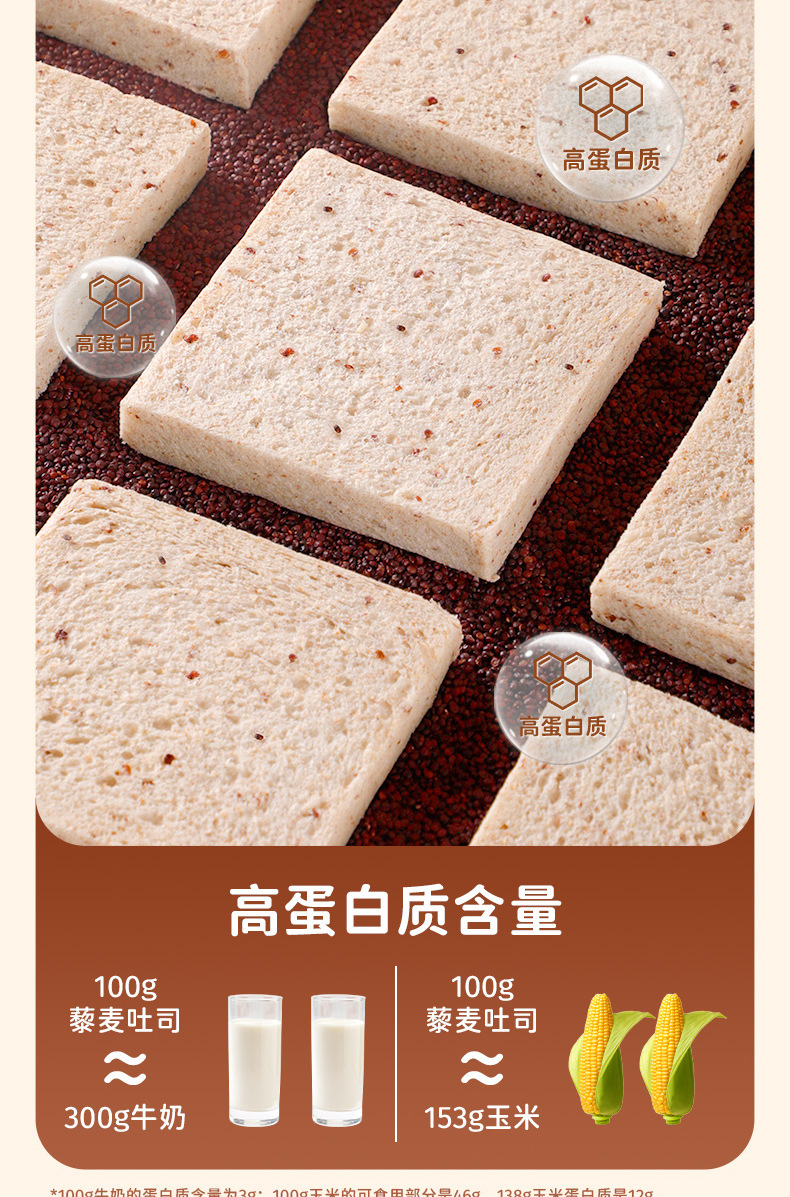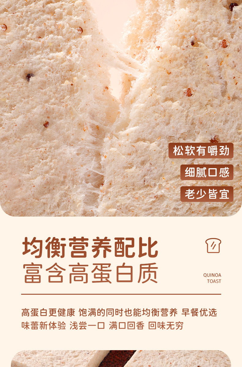 【健康新选择!藜麦无边吐司面包】新鲜藜麦与小麦的全新组合,松软爽口有嚼劲细腻口感,健康早餐休闲下午茶老少皆宜Y