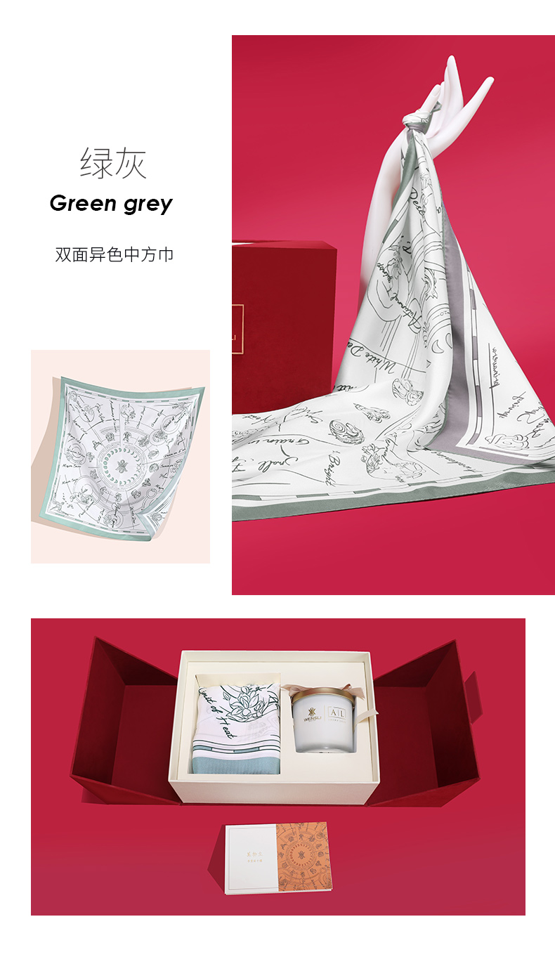 万事利-万物生 双面印花中方巾63*63cm 100%桑蚕丝