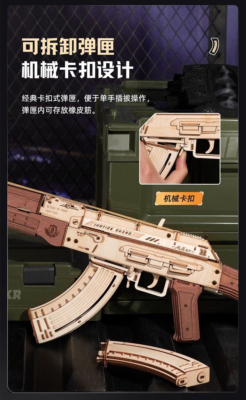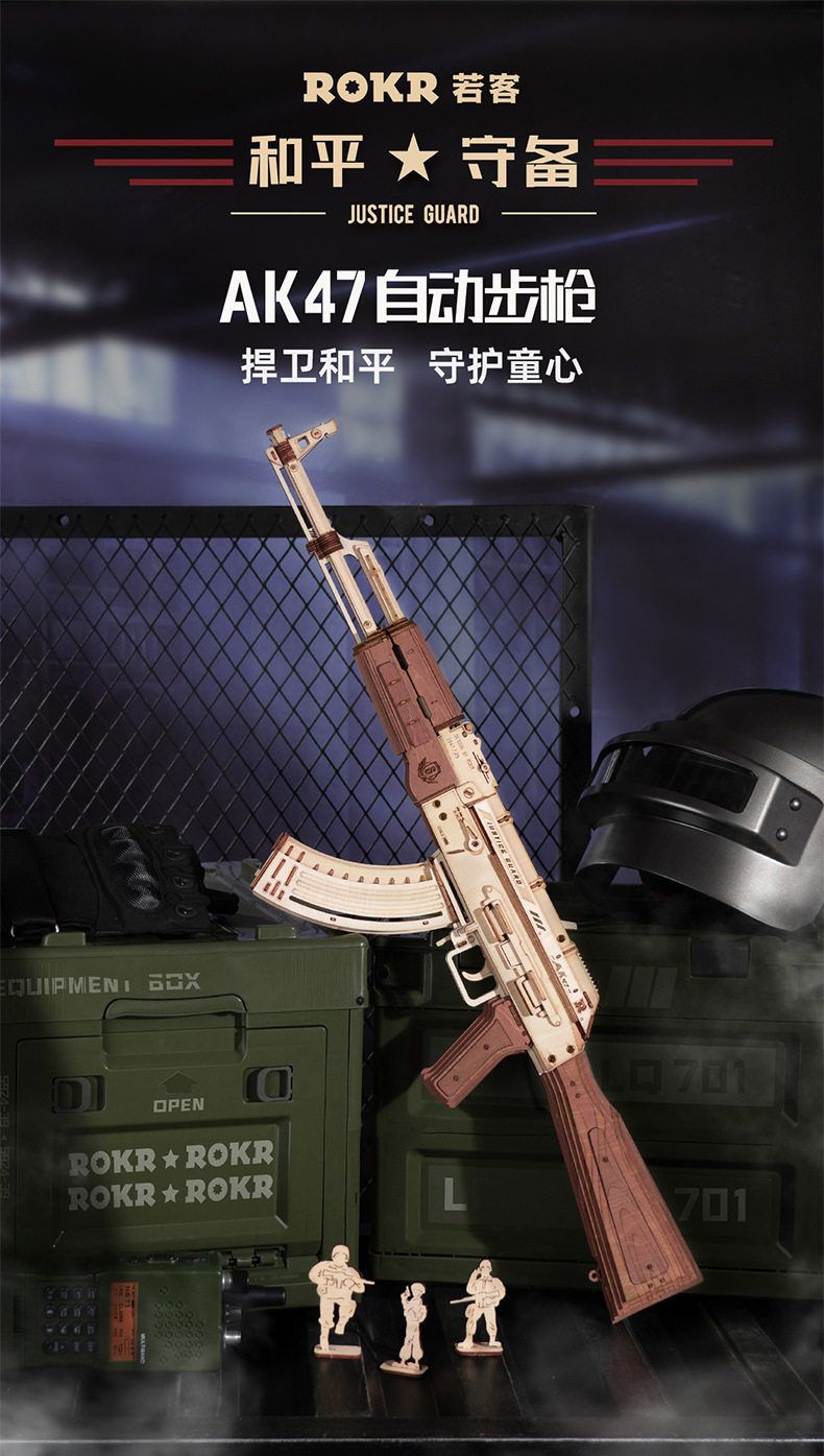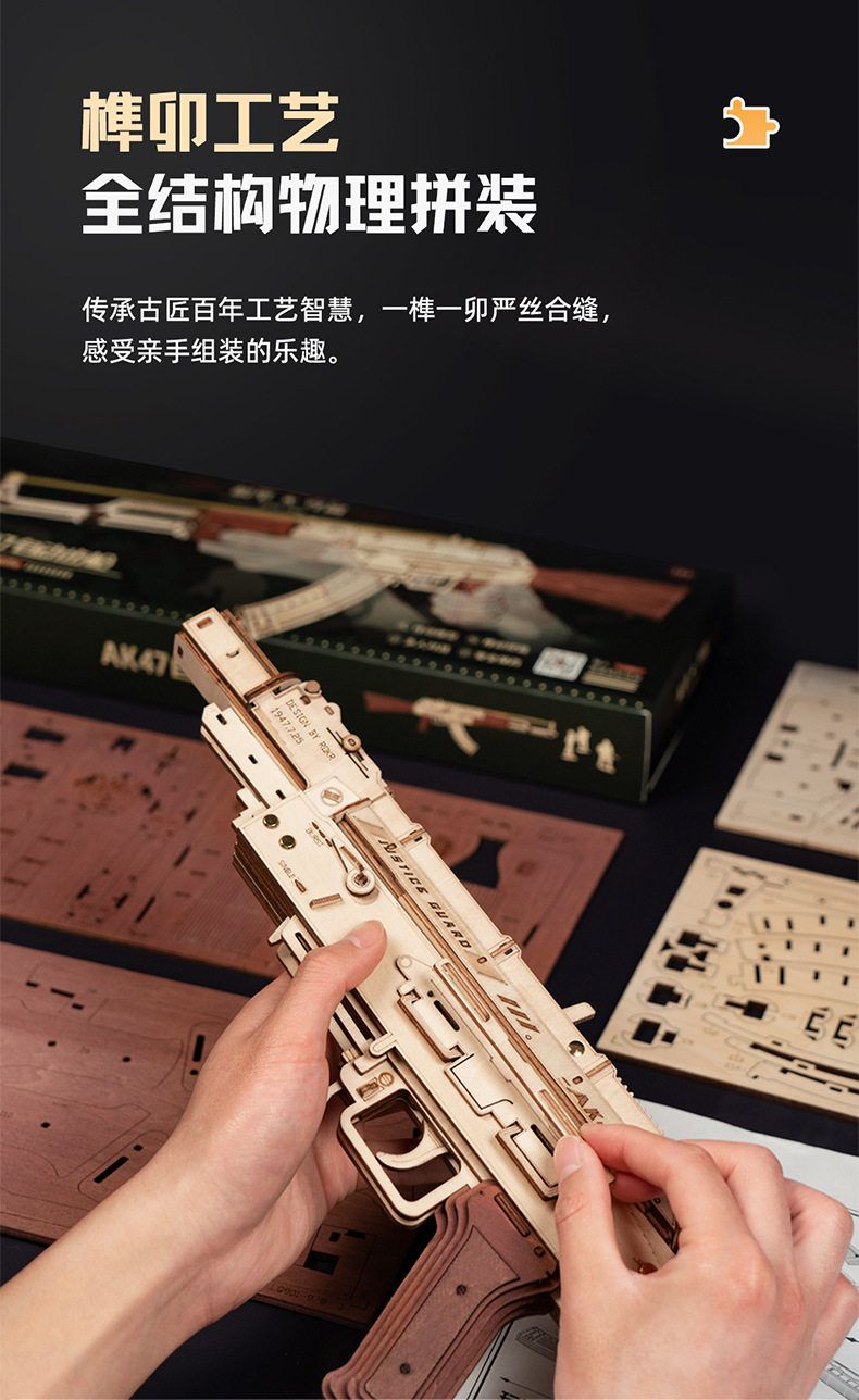 若态若客AK47玩具枪儿童玩具木质拼装模型3d立体拼图玩具礼物