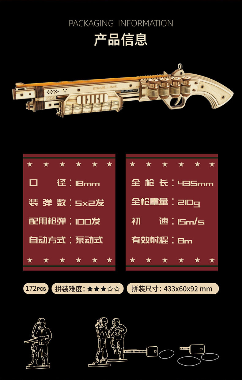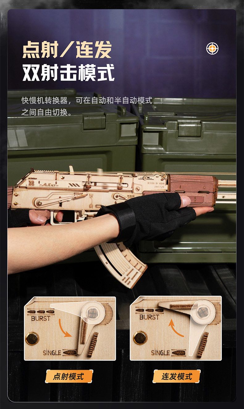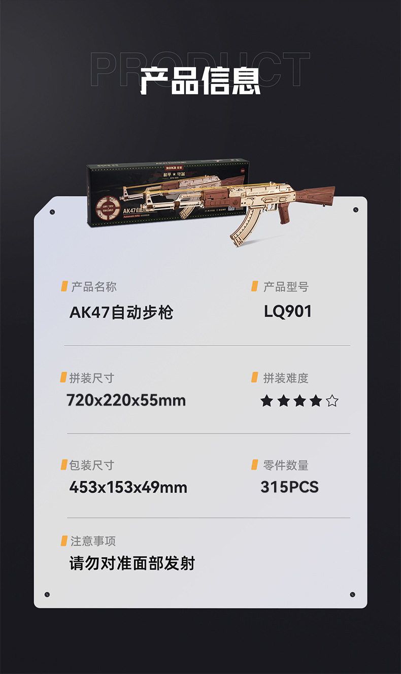 若态若客AK47玩具枪儿童玩具木质拼装模型3d立体拼图玩具礼物