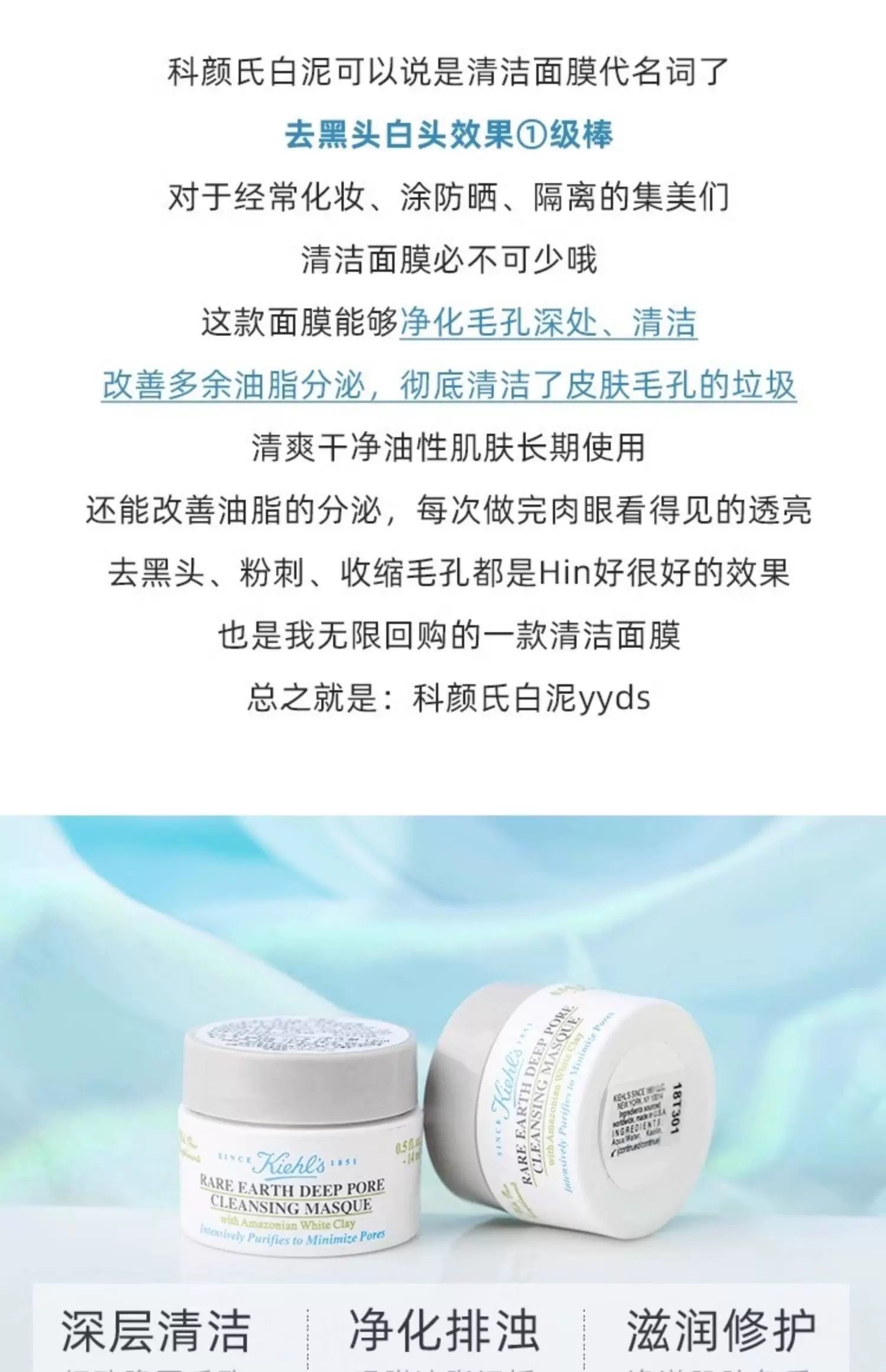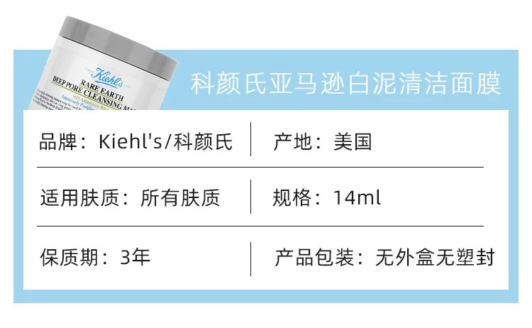 【专柜小样】美国 Kiehl's科颜氏 去黑头白泥涂抹面膜 14ml
