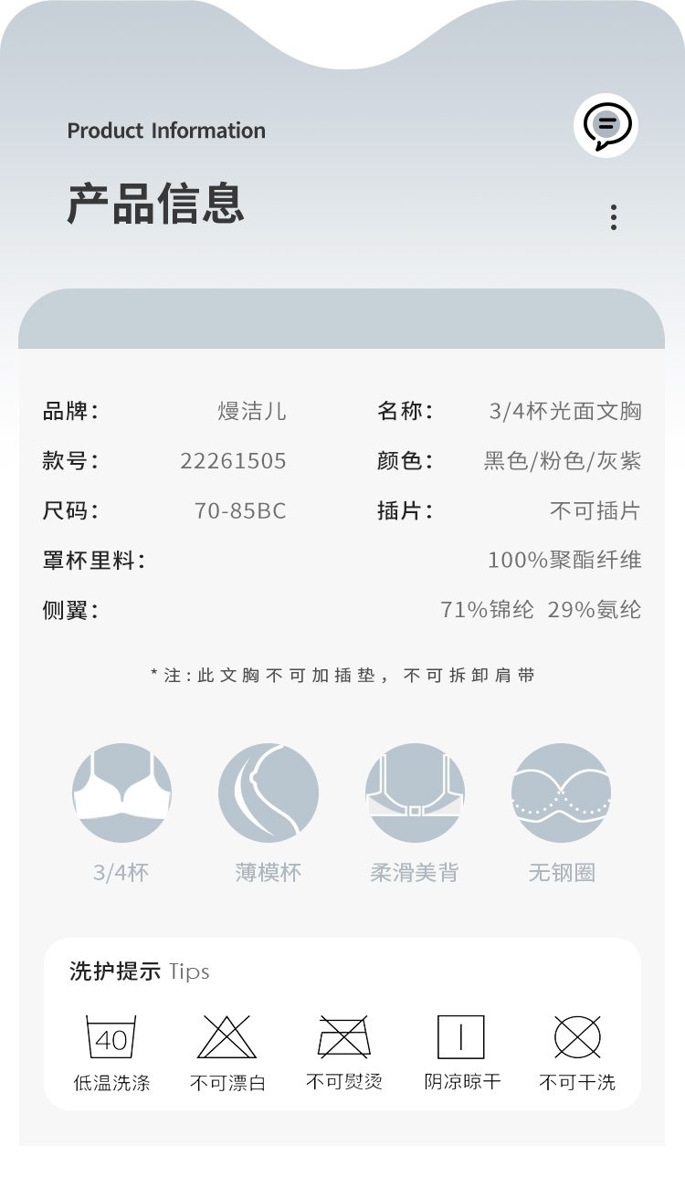 【大胸显小BC杯】熳洁儿 文胸内衣薄款夏季女光面无钢圈薄杯内衣女无痕文胸22261505