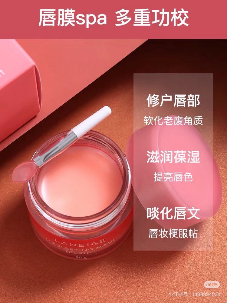 无盒兰芝唇膜20g!两瓶包邮淡淡的草莓味,滋润且不油腻呢~含有树莓,草莓,蓝莓等水果中提取的精华成分和超级丰富的维生素C能在夜间充分滋养唇部。长期使用能去除角质和淡化唇纹[害羞]适合唇部角质层厚,容易干燥起皮,唇部化妆频繁的宝贝。使用方法睡觉前涂抹就可以啦,不需要清洗