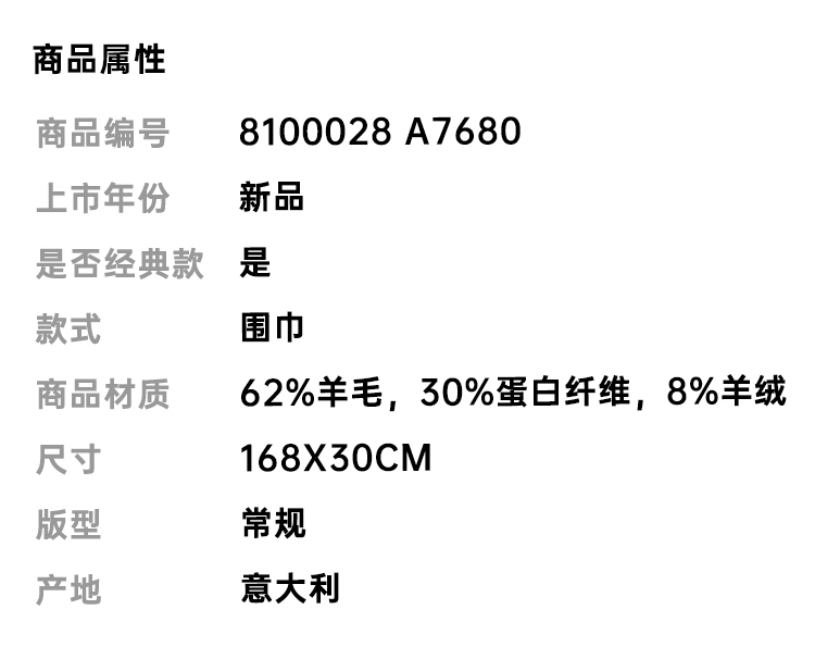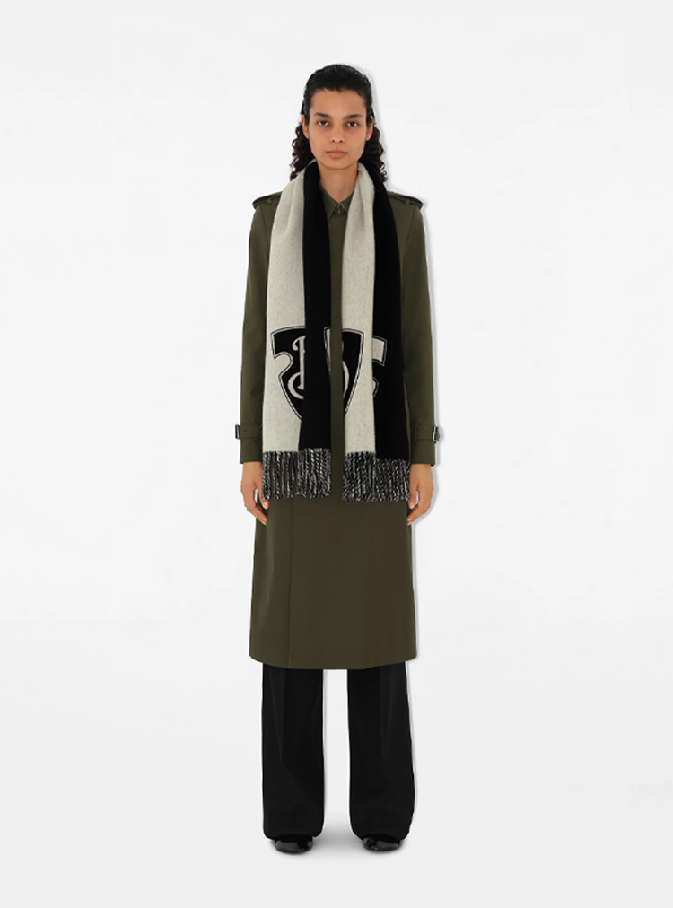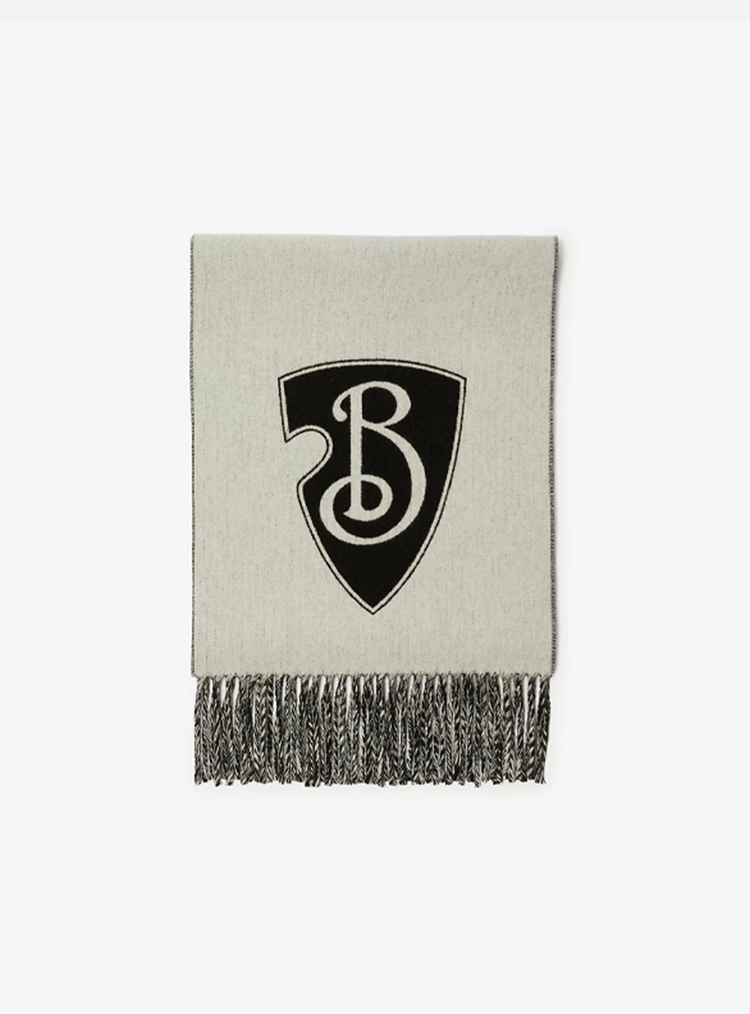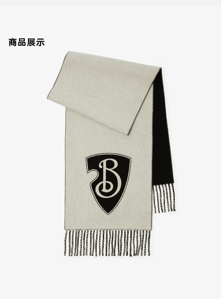 BURBERRY 巴宝莉 男女通用 B 字型盾牌图案 Brewed Protein™羊毛混纺围巾 黑色 8100028 A7680