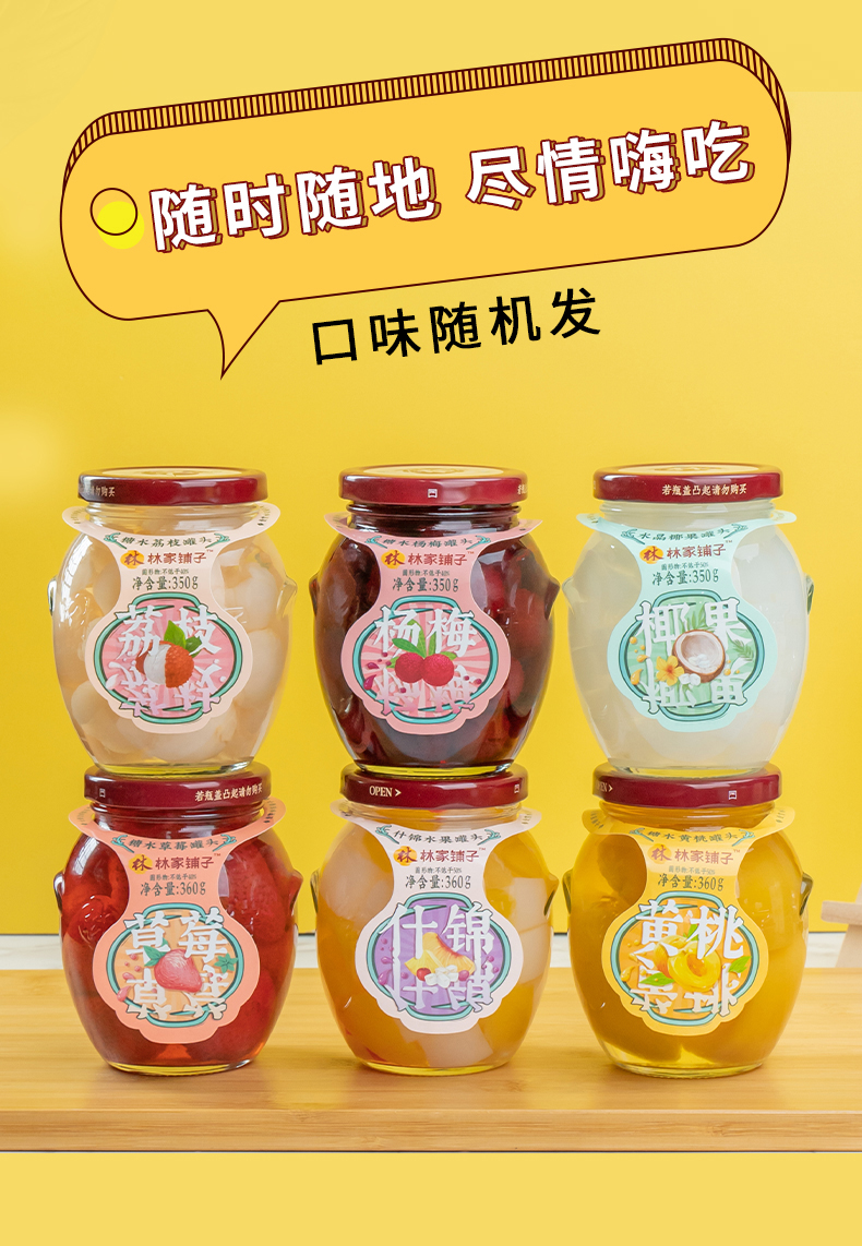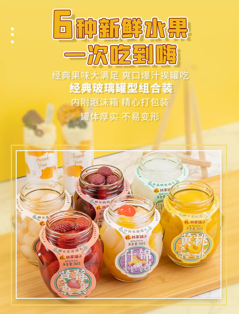 林家铺子荟萃水果罐头360g*6罐玻璃罐