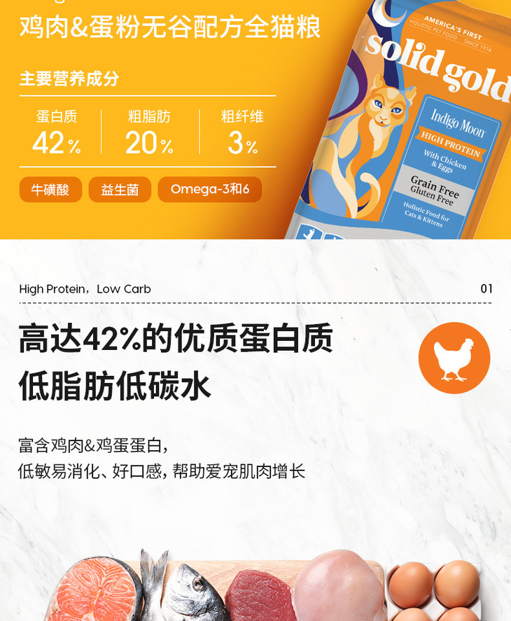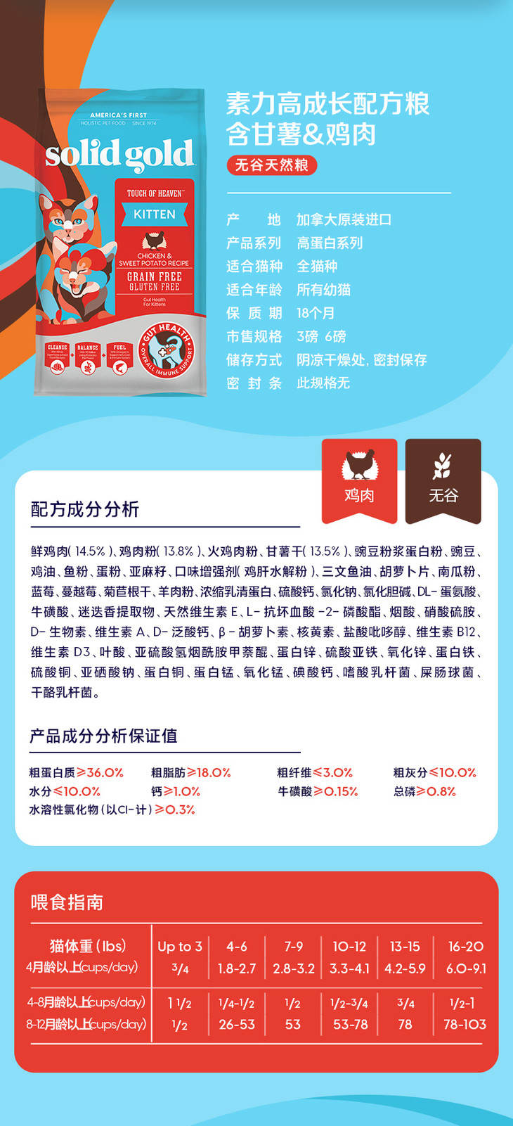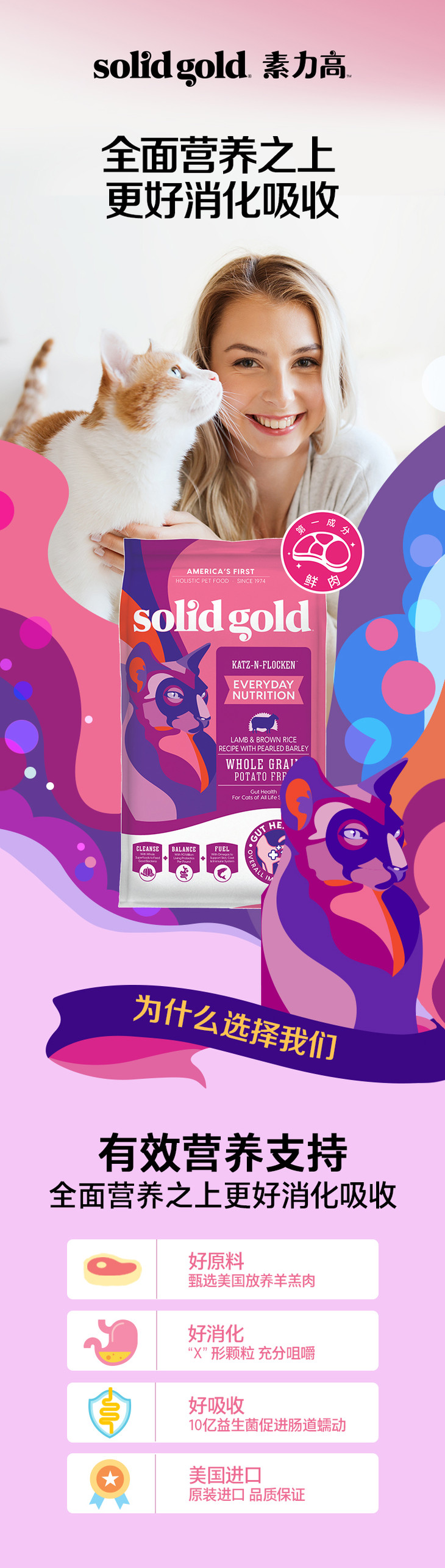 Solid gold素力高金装系列鸡肉味/羊肉配方猫粮12磅5.4kg/幼猫6磅2.72kg