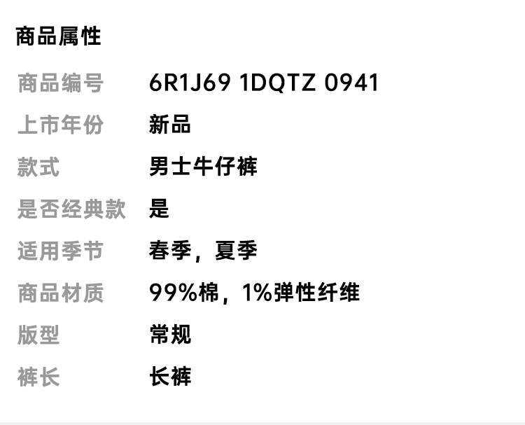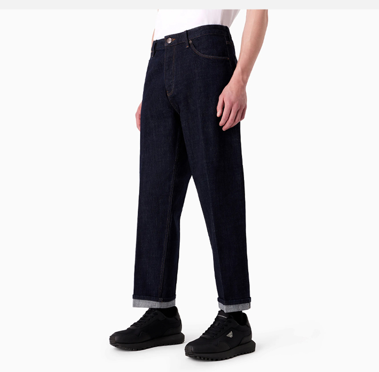 EMPORIO ARMANI 阿玛尼 男士 J69 Denim Lab 宽松镶边休闲牛仔裤 蓝色 6R1J69 1DQTZ 0941