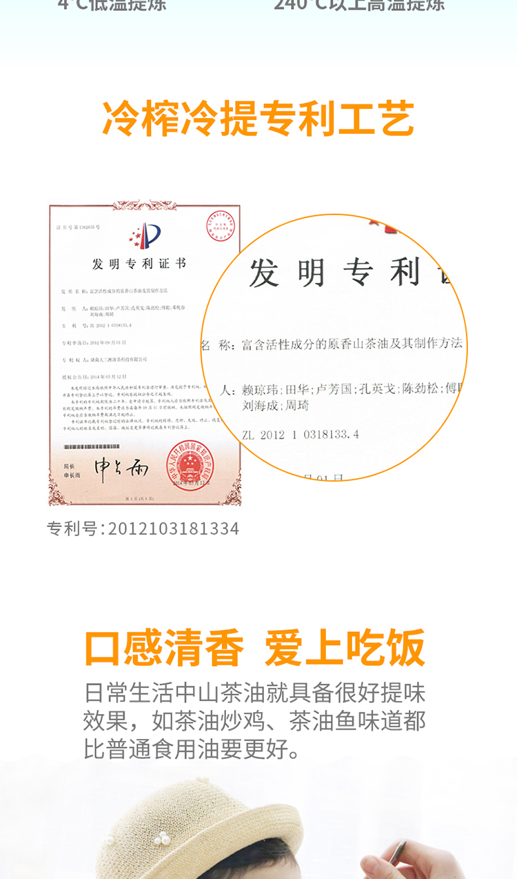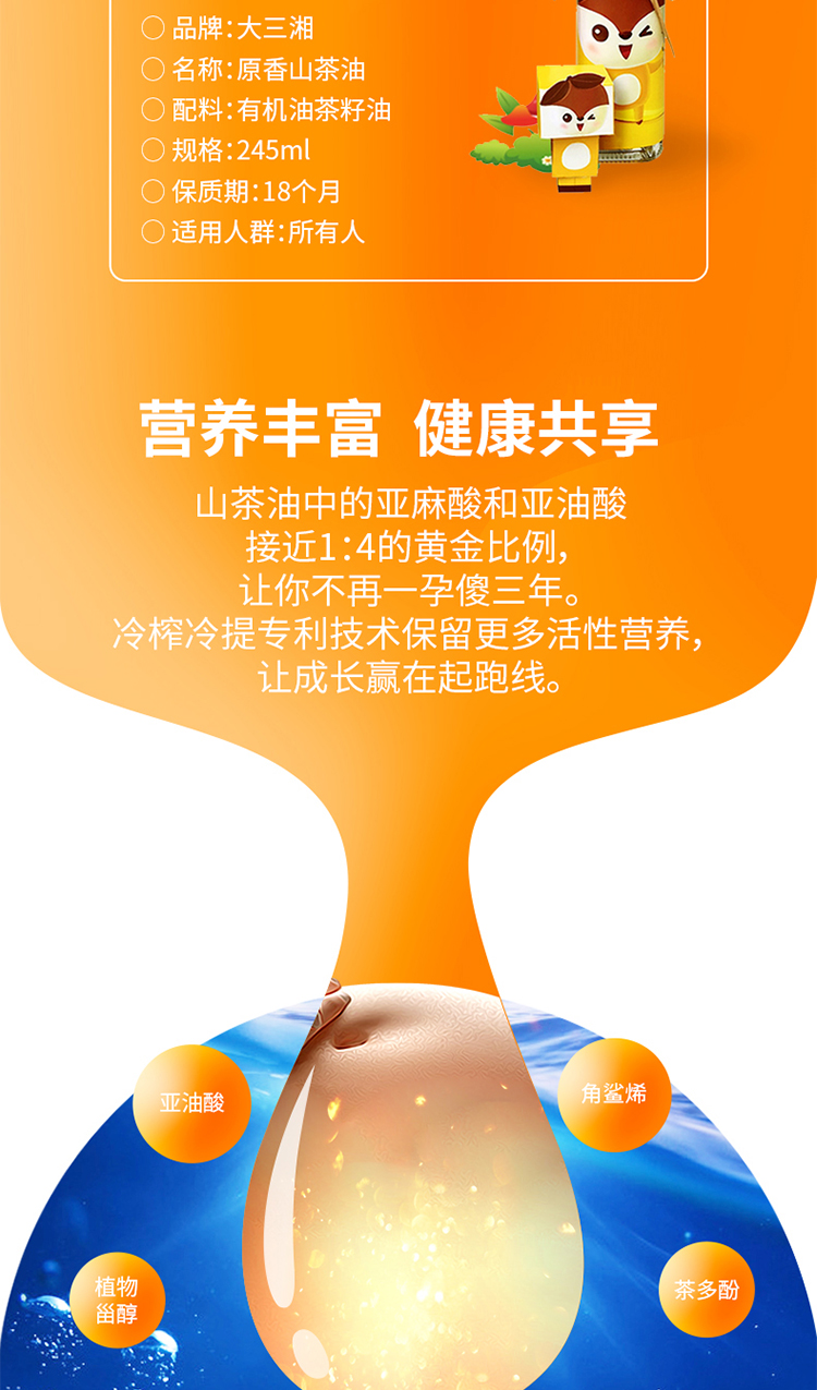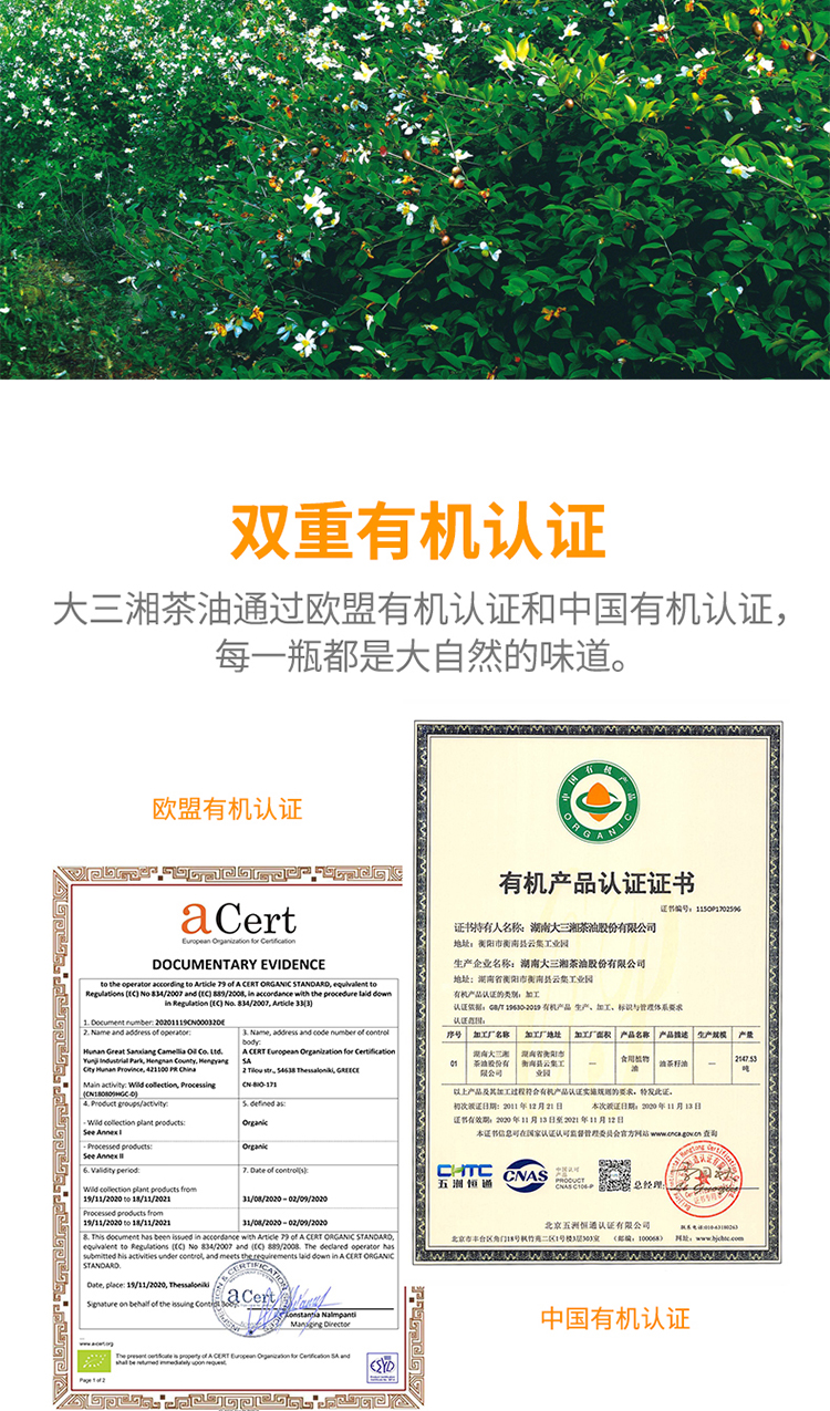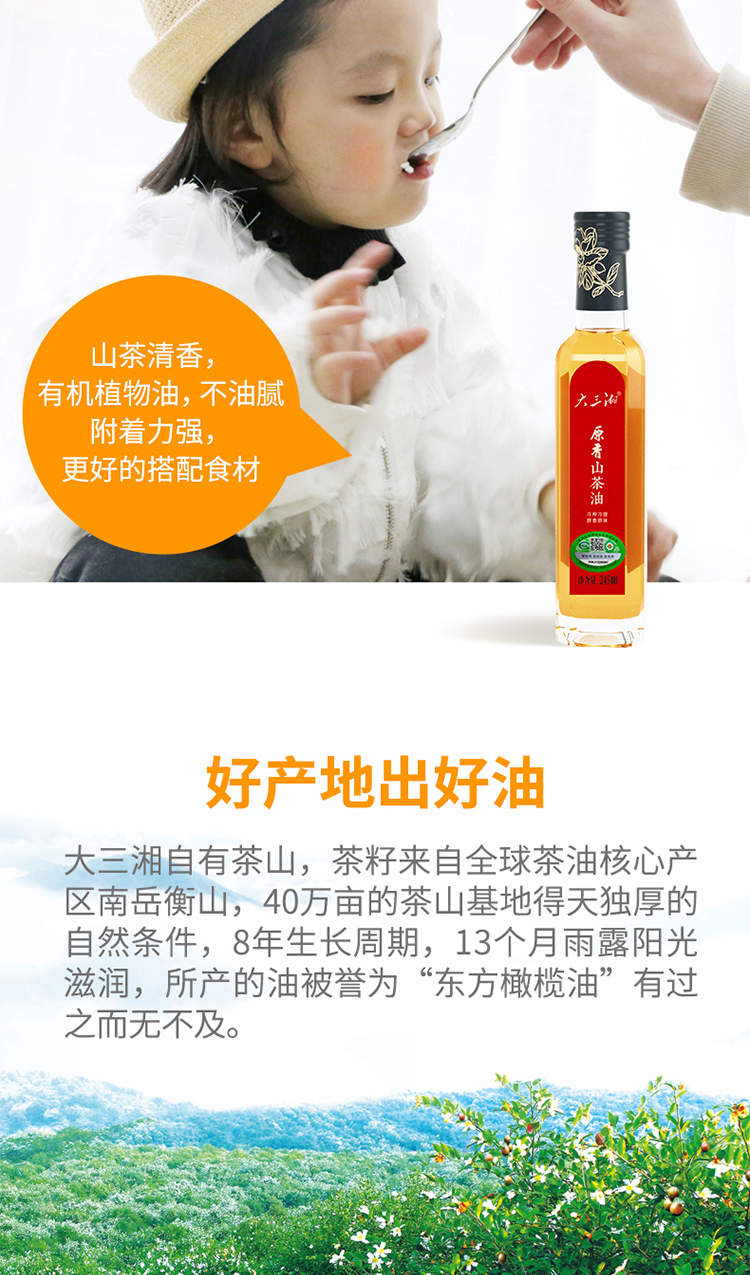 大三湘原香山茶油有机茶油食用油冷榨冷提纯正茶籽油245ml