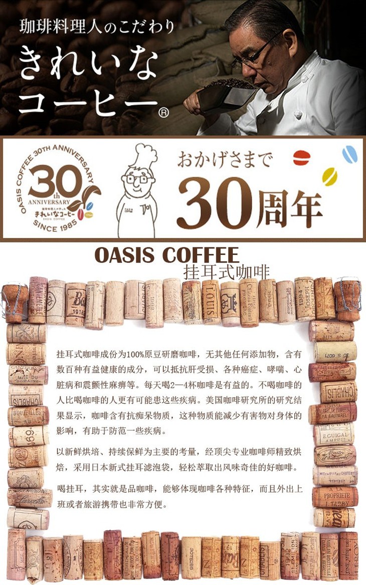 日本进口oasis coffee/绿洲咖啡滤挂滴漏挂耳式咖啡 /European Blend 10包/件(8g/包,欧洲混合)JPY带授权招加盟代理