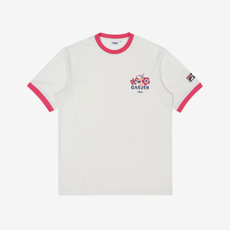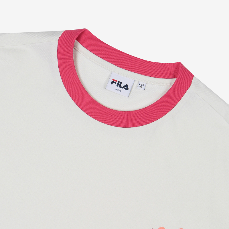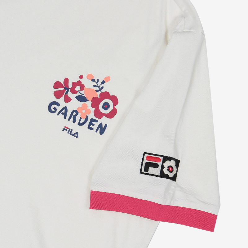 韩国F家斐乐韩国花卉纺织品制成圆形宽松短袖T 恤FS2RSC2T02X_VAAJPY带授权招加盟代理