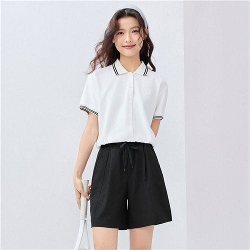 佐丹奴女装26年新款棉感莱卡珠地绣花短袖POLO衫05316252