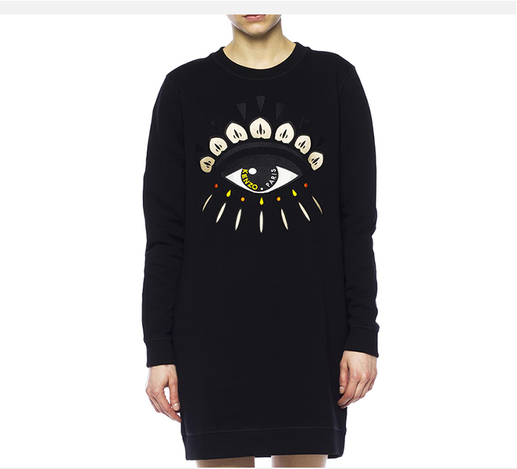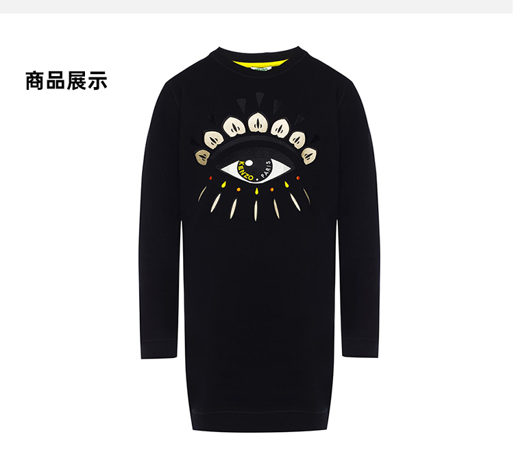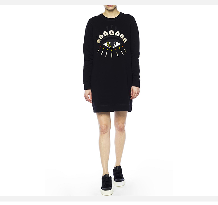 KENZO 高田贤三 女士棉质刺绣眼睛图案圆领长袖连衣裙 黑色 F852 RO837 4XI 99