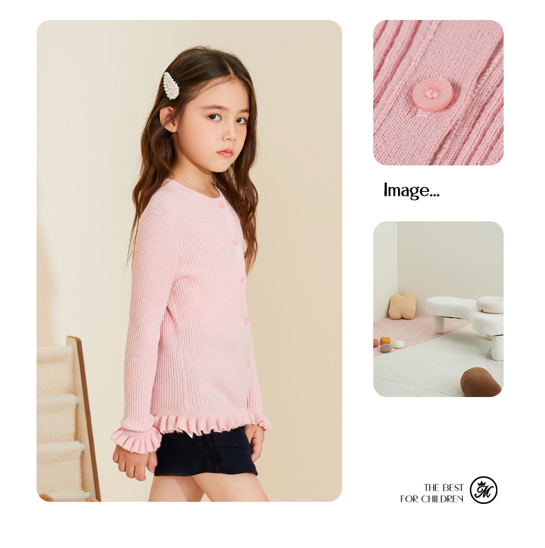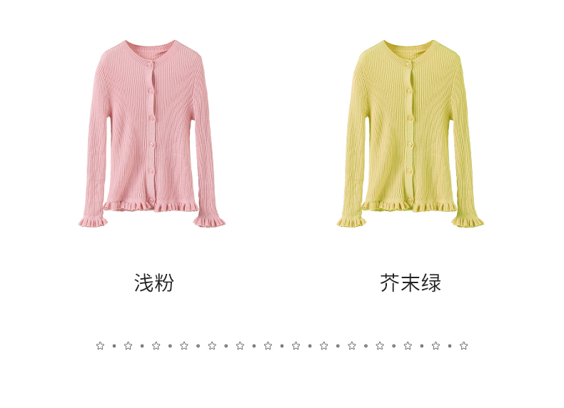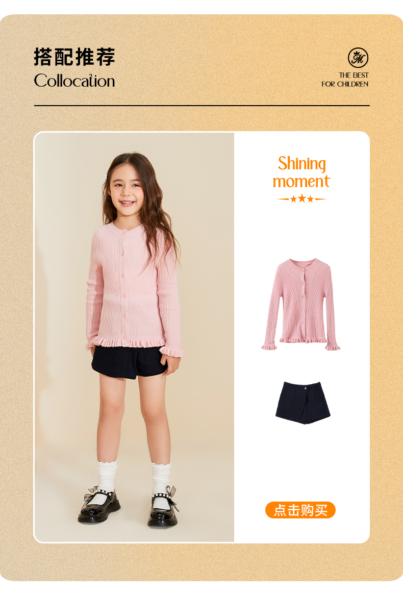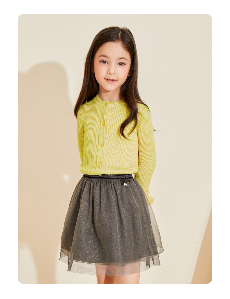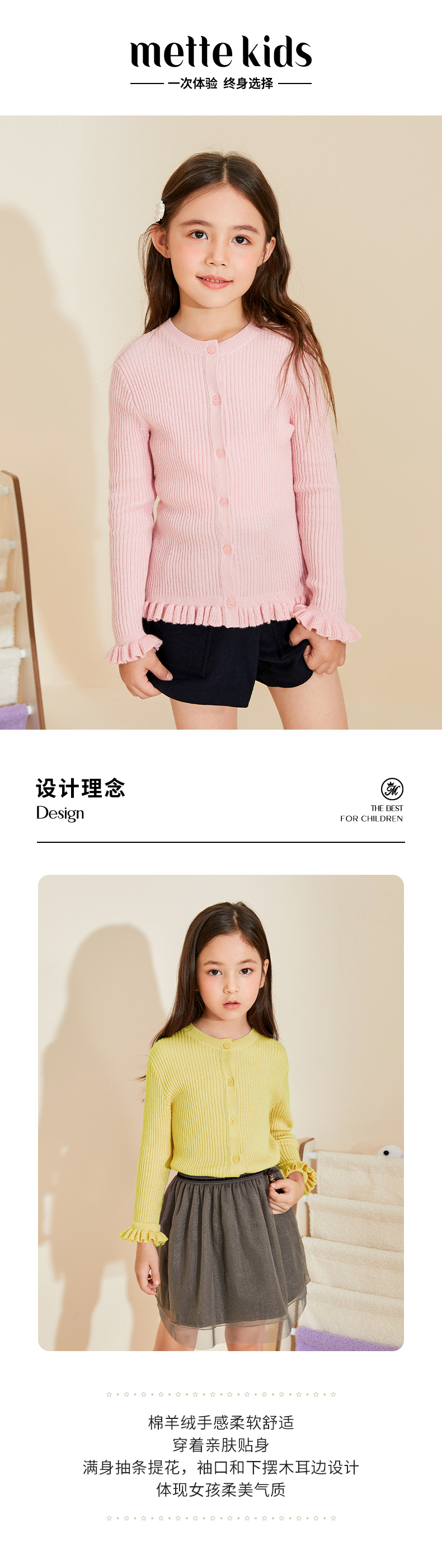 mettekids儿童针织衫春秋新款打底衫中大女童小香风圆领开衫毛衣
