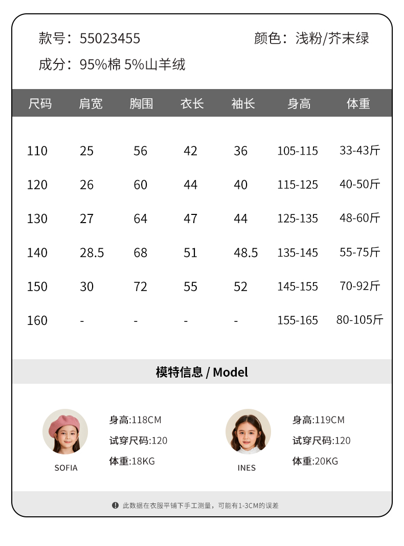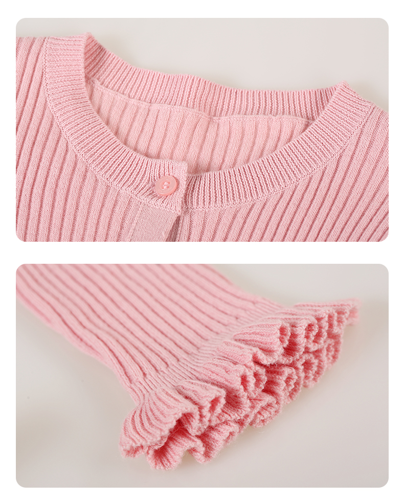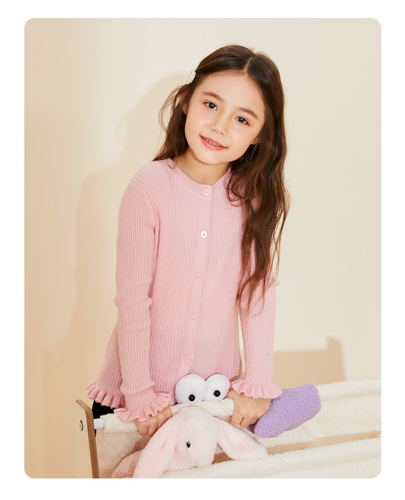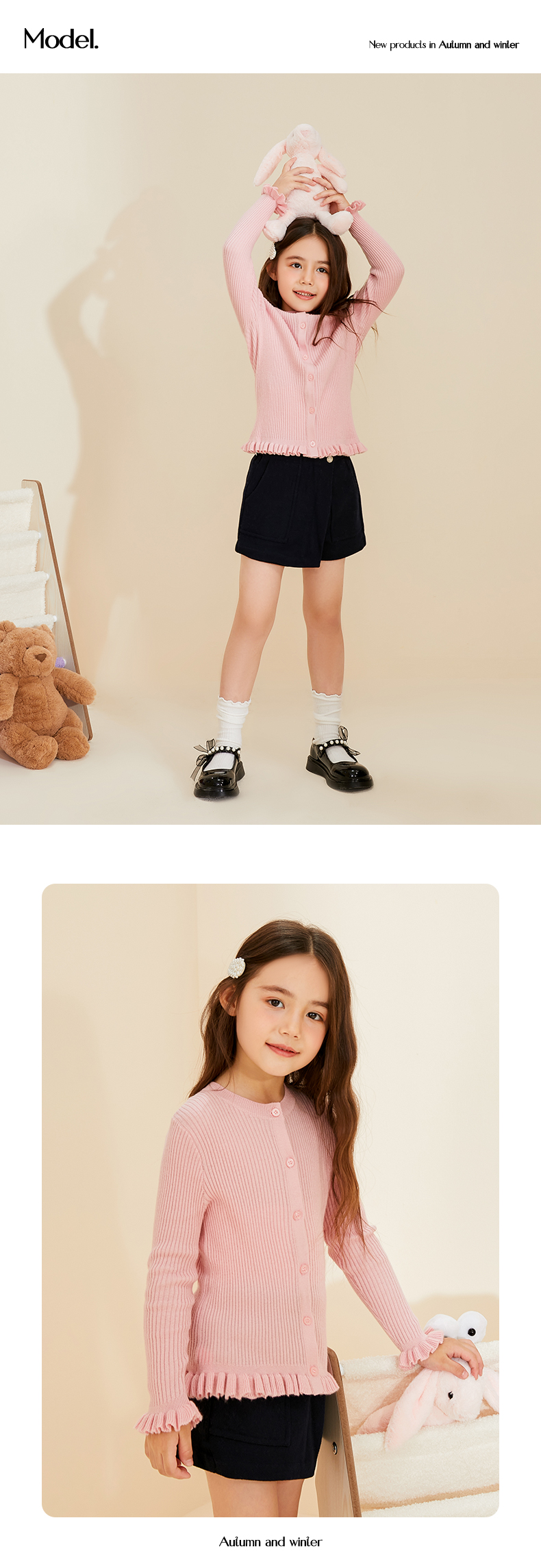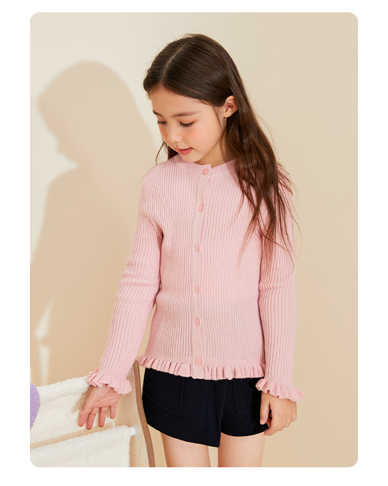mettekids儿童针织衫春秋新款打底衫中大女童小香风圆领开衫毛衣