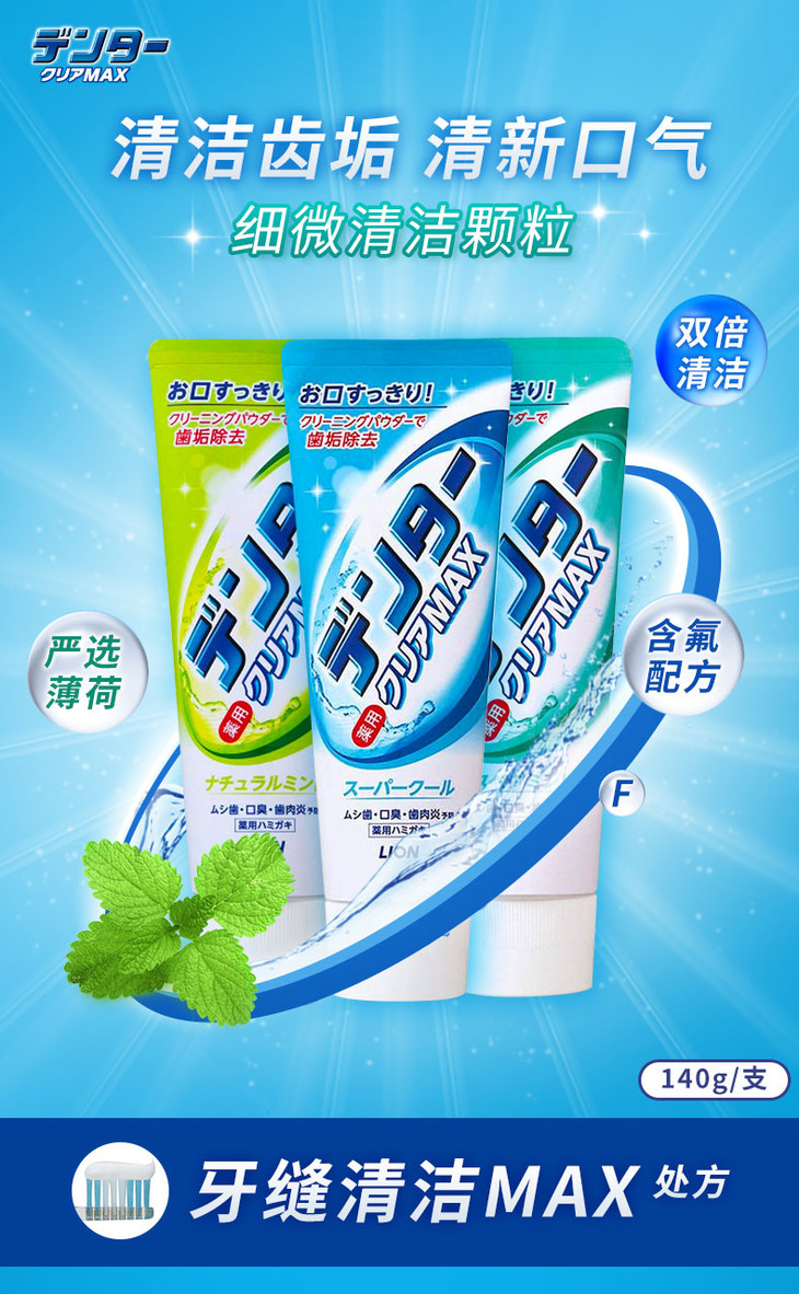 日本狮王粒子牙膏(清爽薄荷)140g