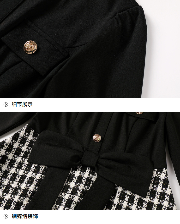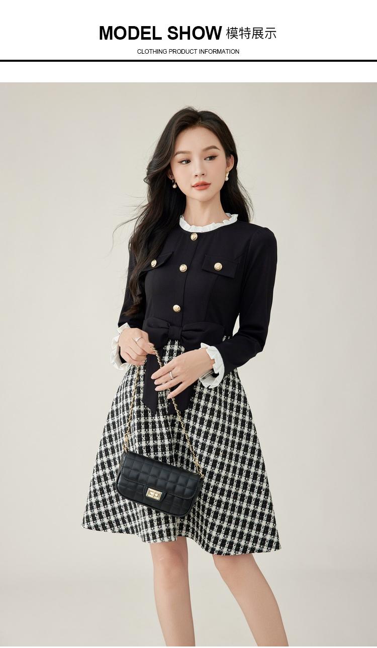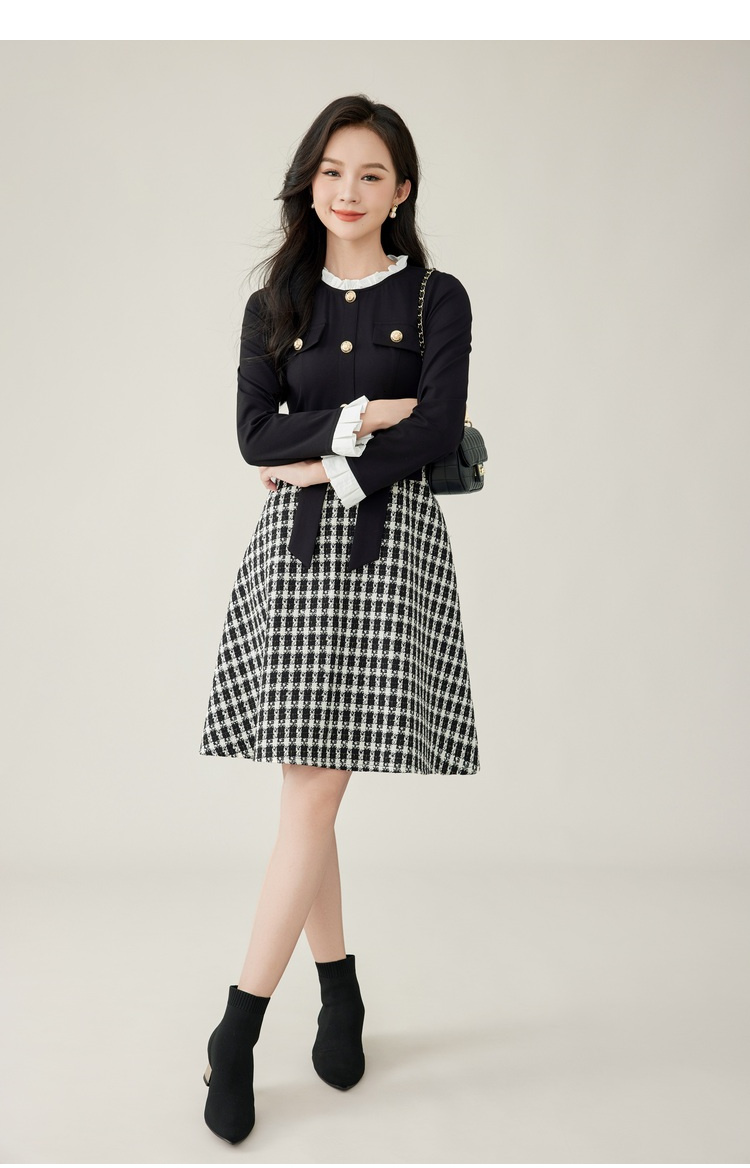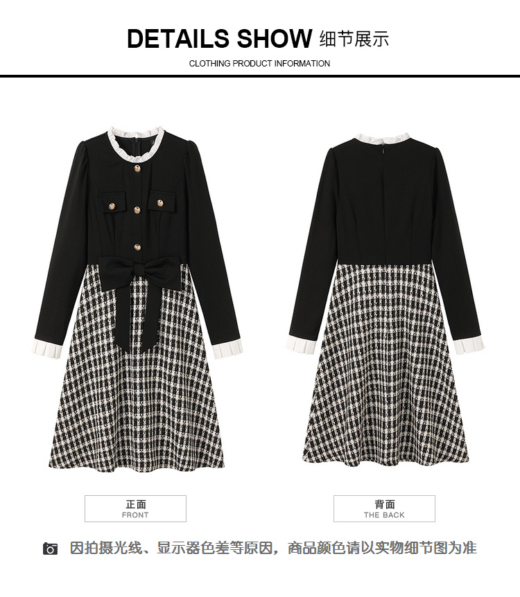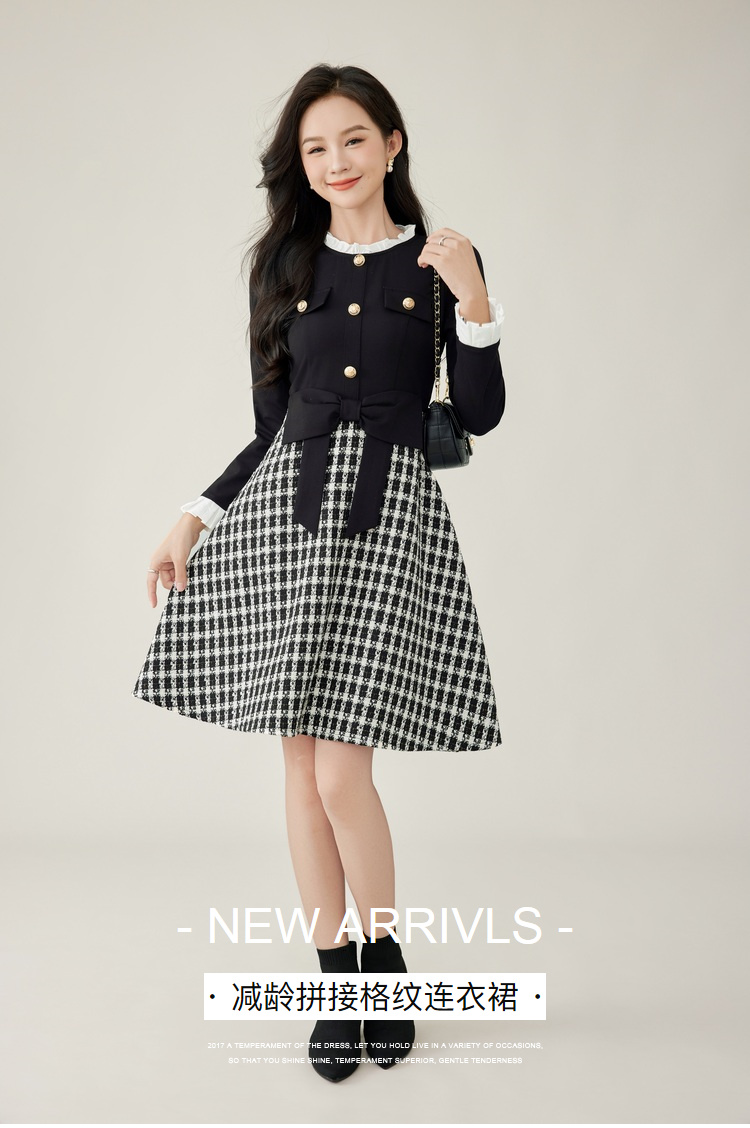 奢姿2024年秋冬新款大码女装甜美减龄裙子胖妹妹拼接格纹连衣裙9944855178