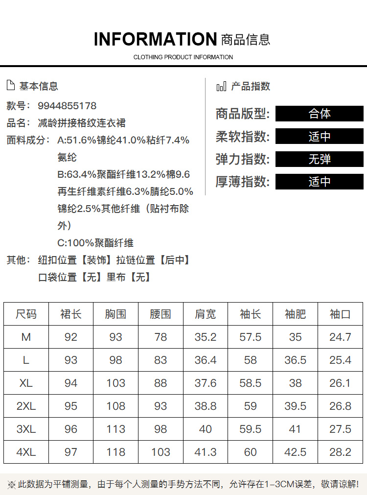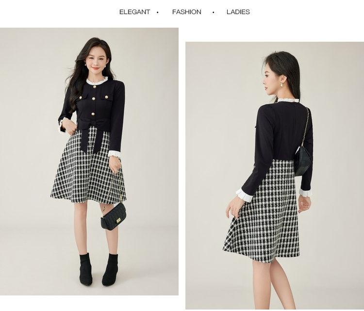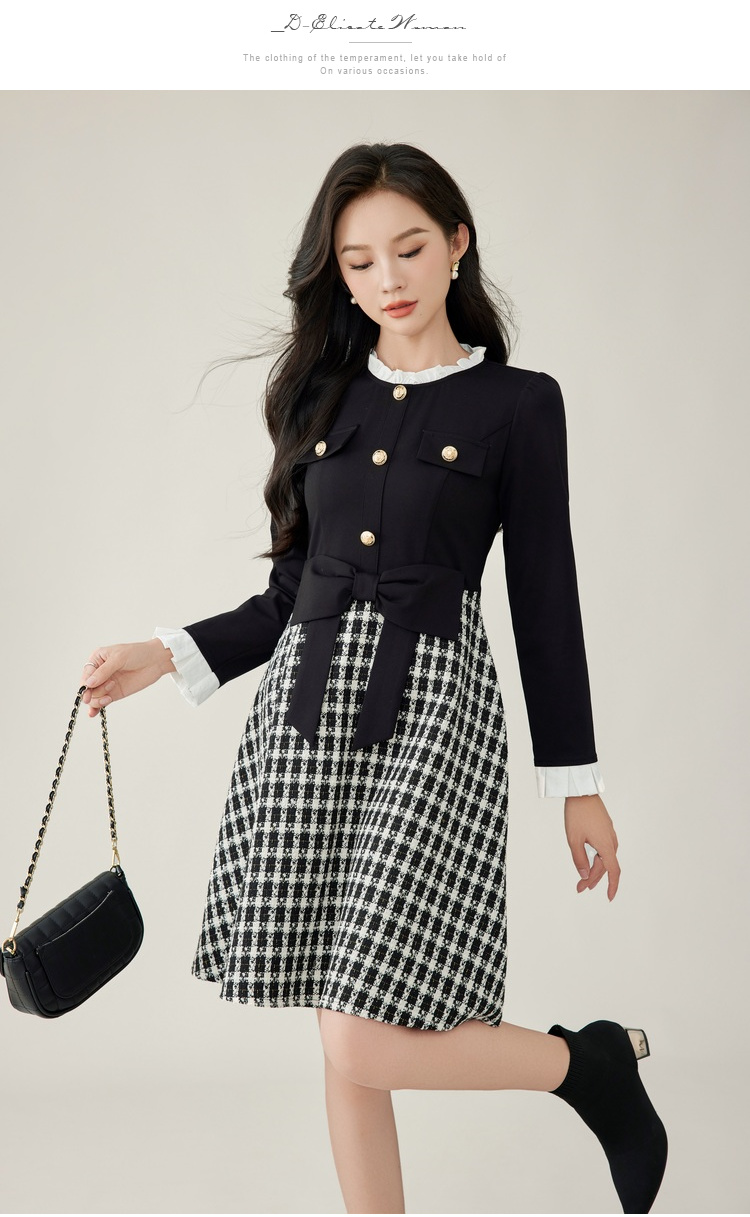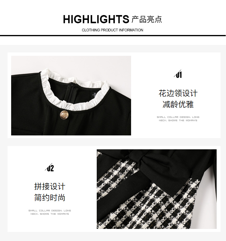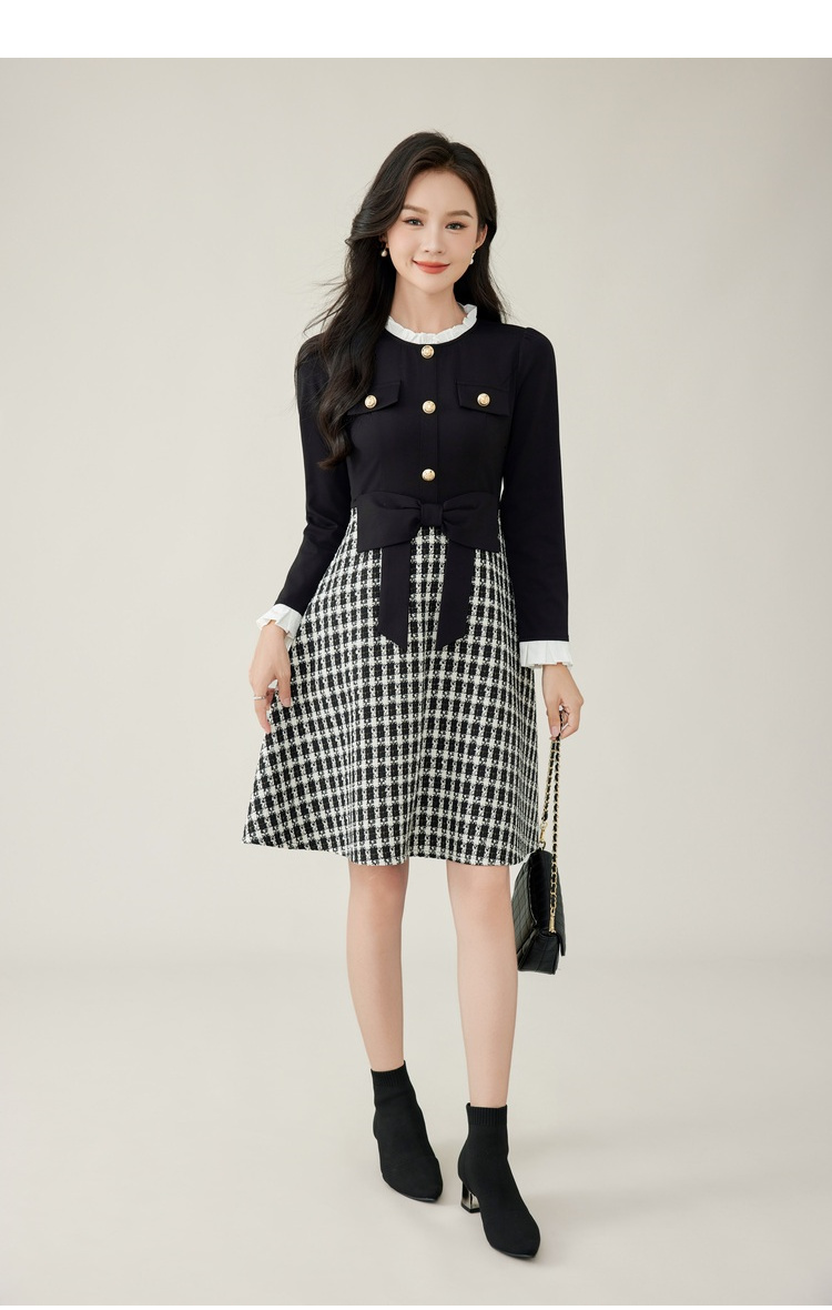 奢姿2024年秋冬新款大码女装甜美减龄裙子胖妹妹拼接格纹连衣裙9944855178