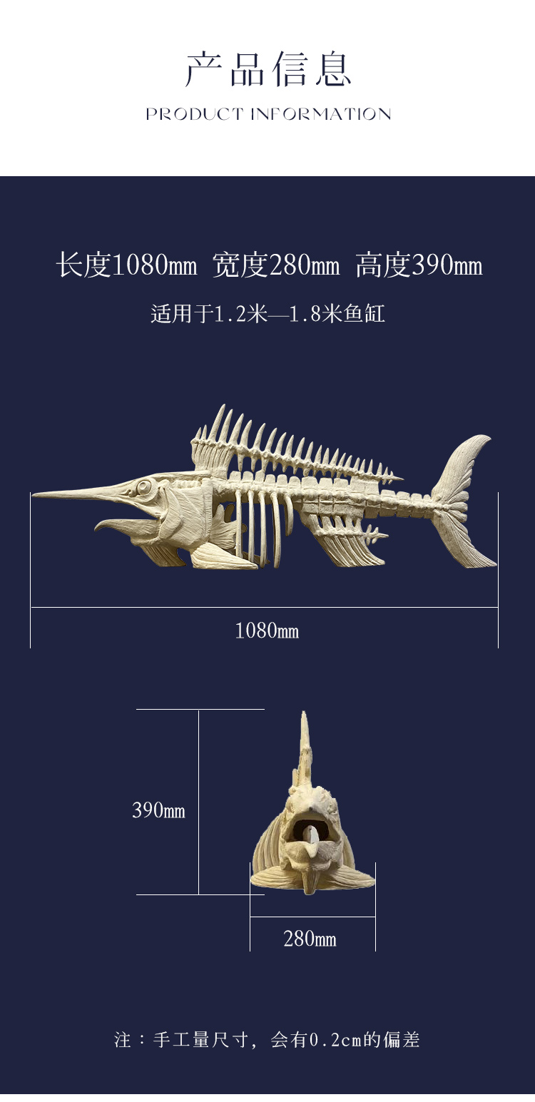 旗鱼骨骼造景摆件鱼骨造景海水缸造景石纯鱼缸FOT海水鱼珊瑚