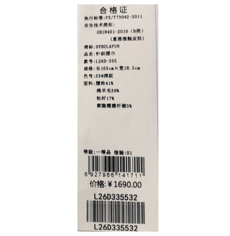 戴布拉芬针织围巾L26D335