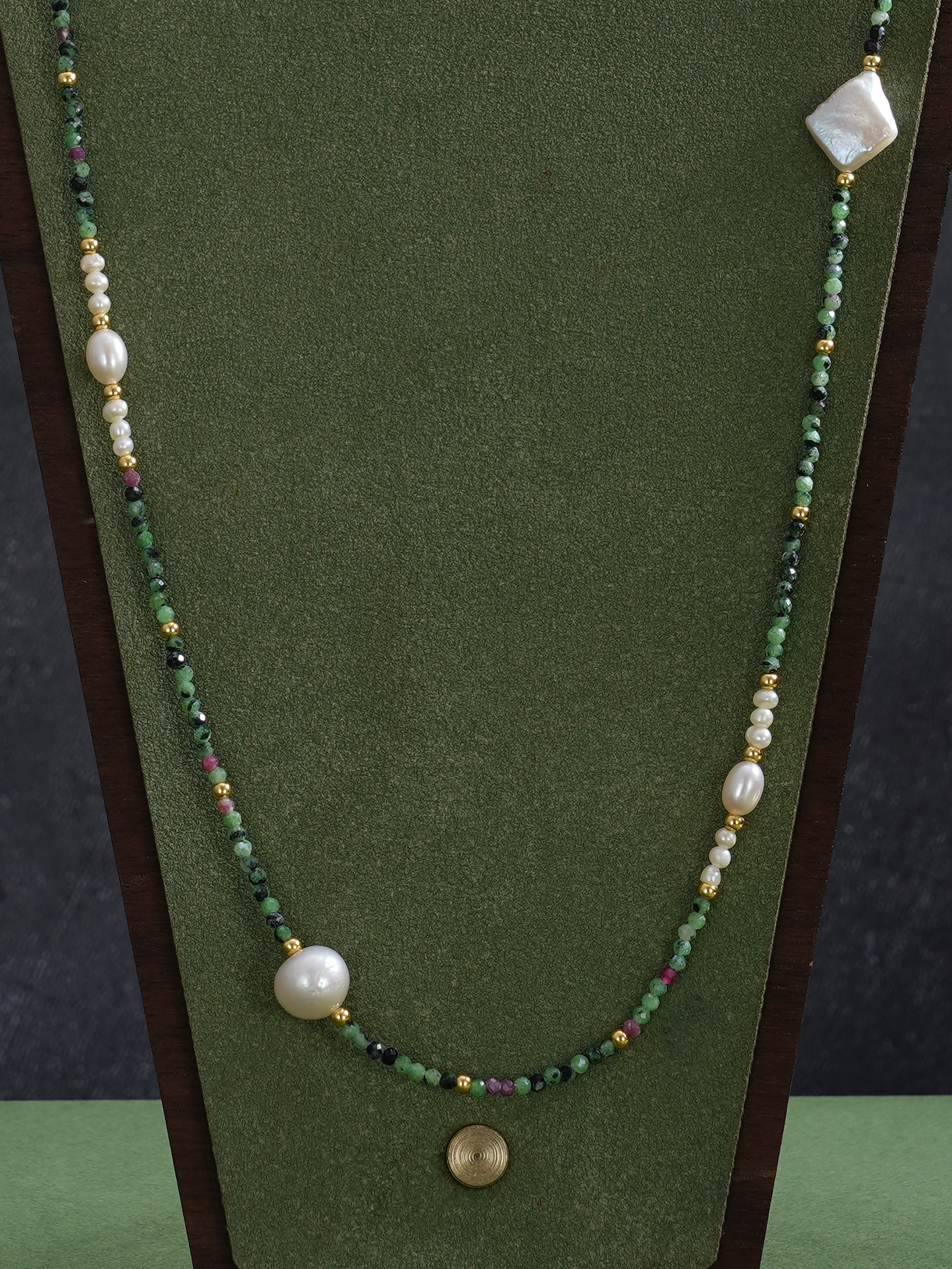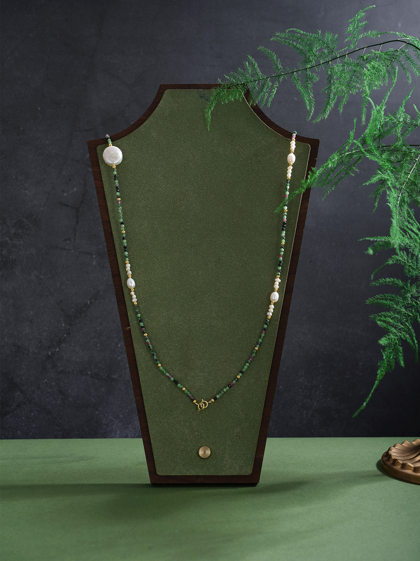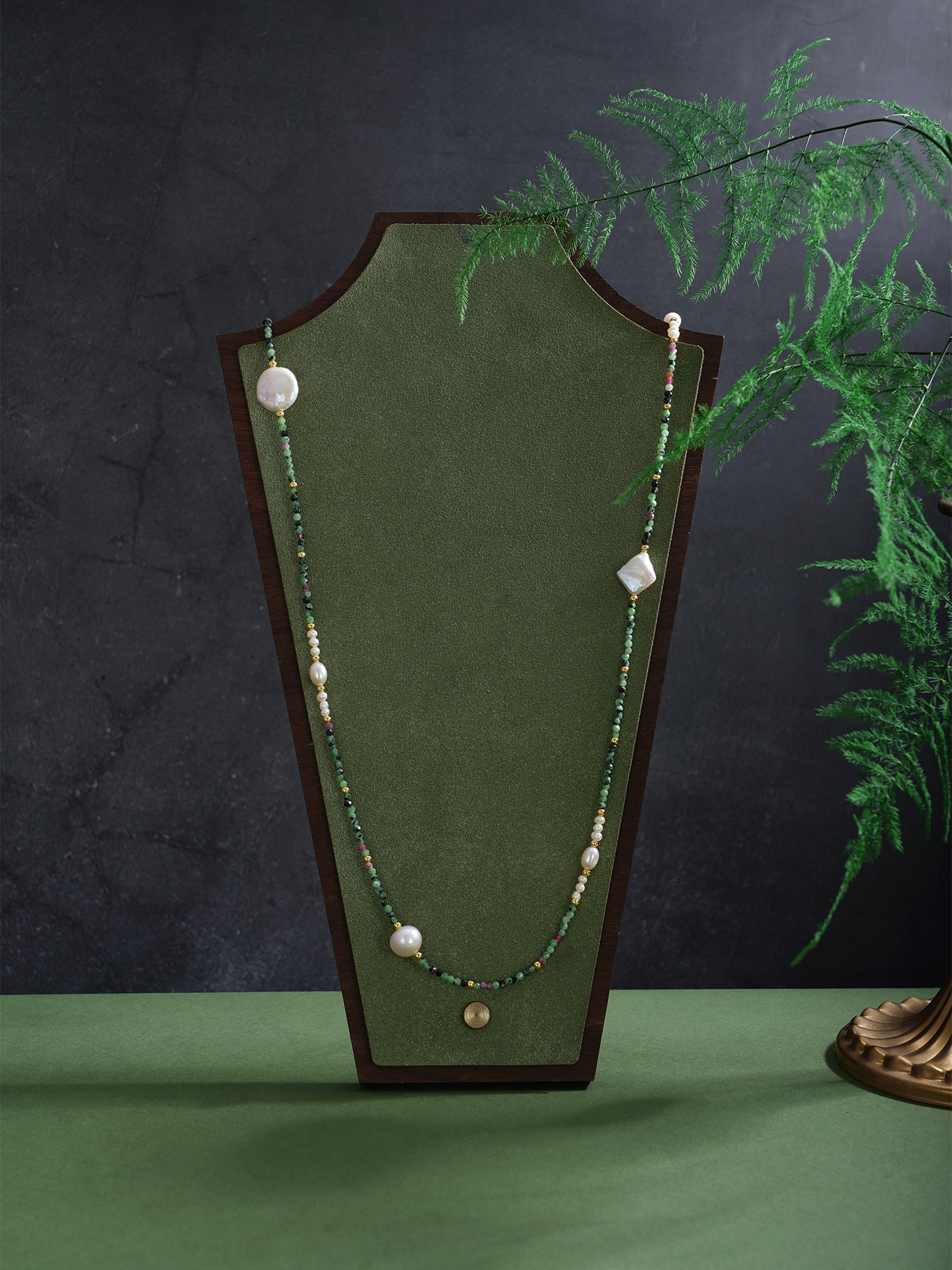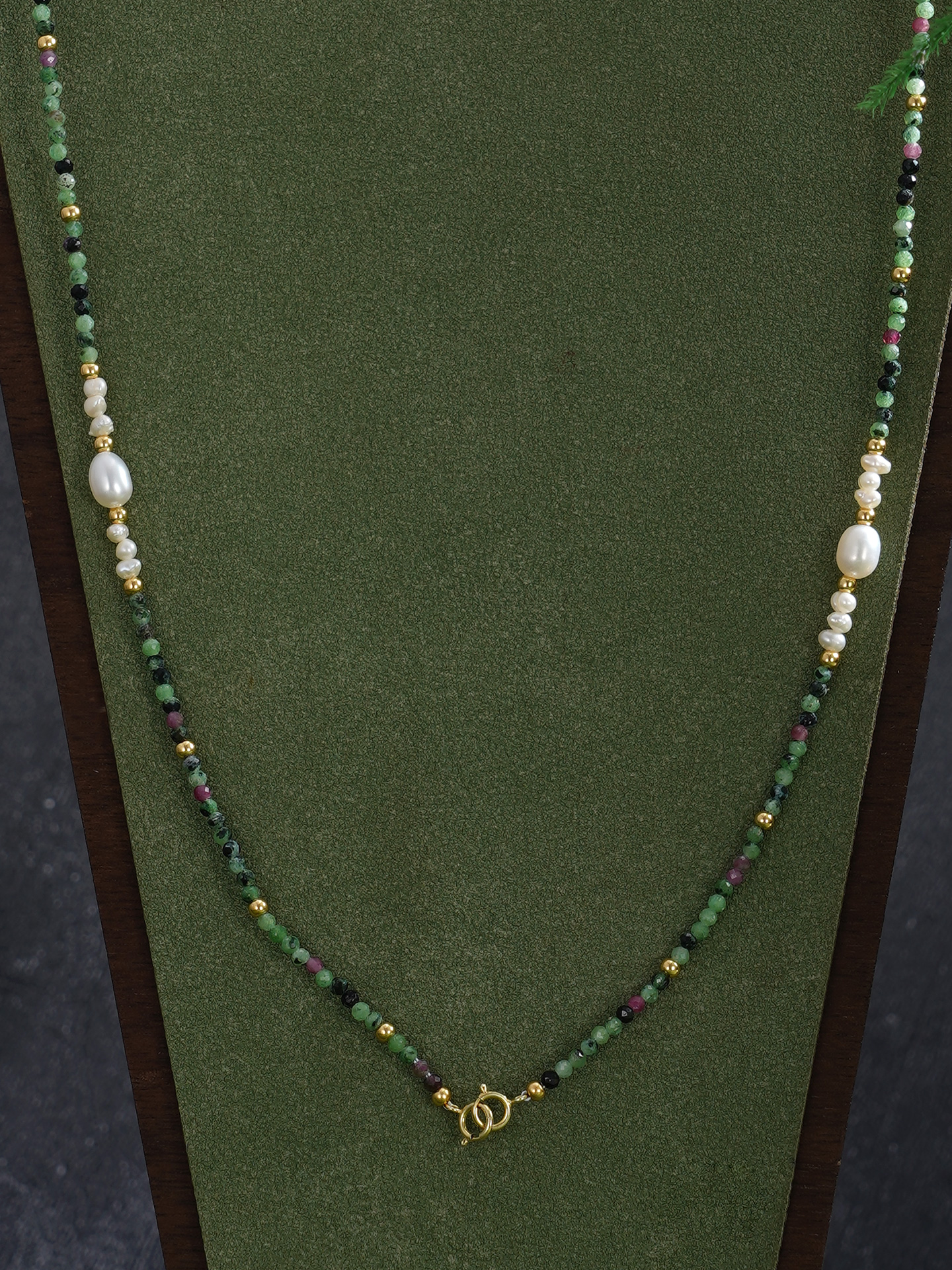 子佩集【绿野森林】银S925珍珠项链【SGN1150001】9.5mm圆珠2mm绿珠2512
