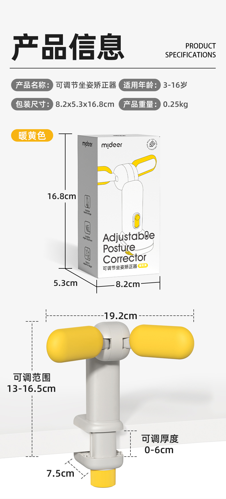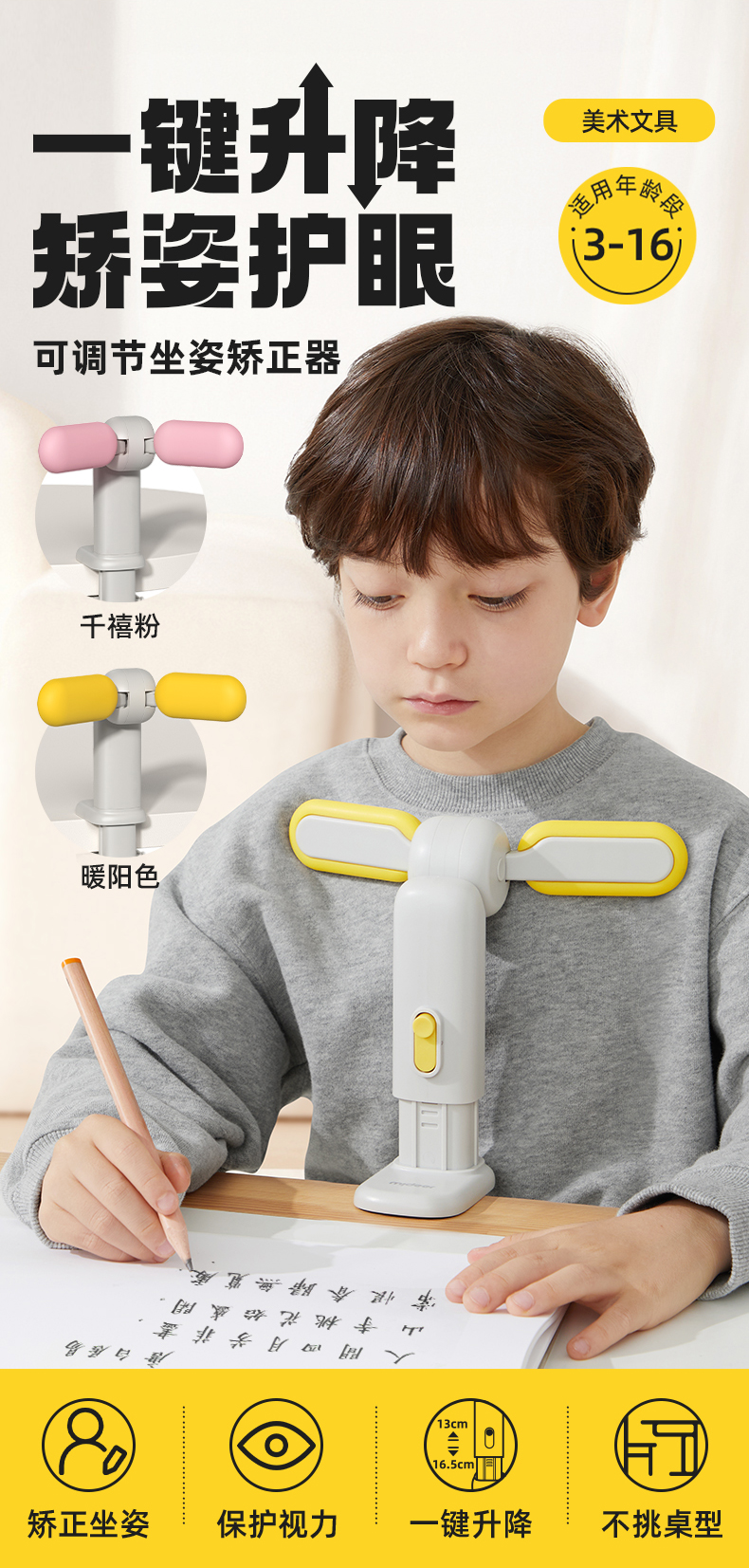 mideer弥鹿坐姿矫正器小学生写字坐姿预防儿童近视保护器幼儿初学者写作业姿势纠正器书写防低头防驼背神器