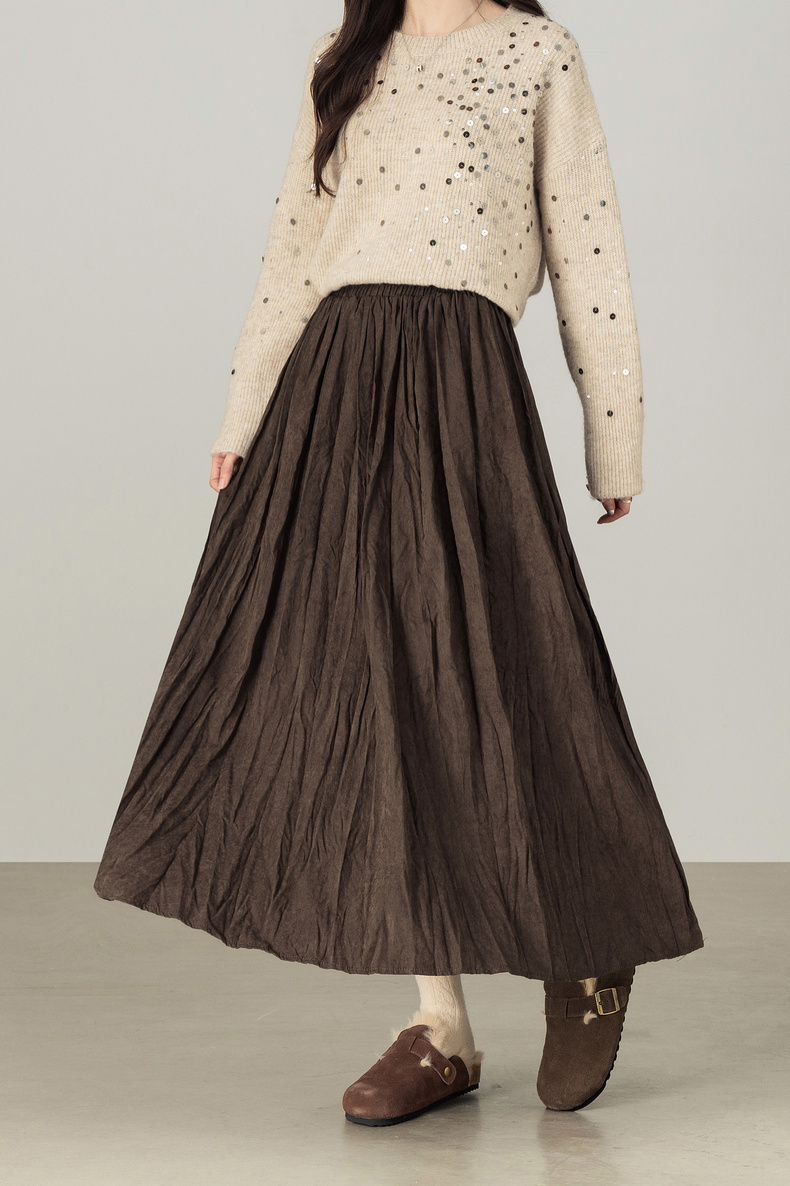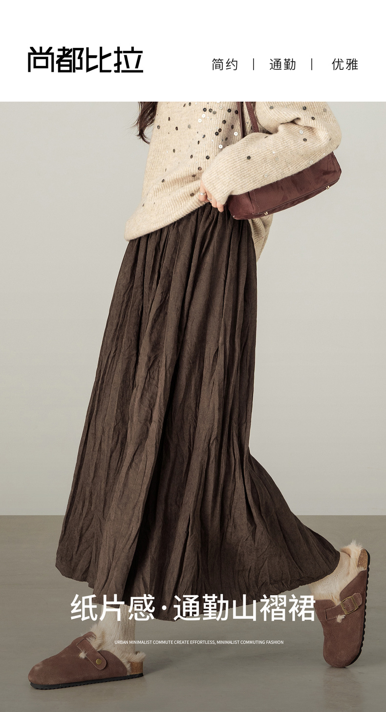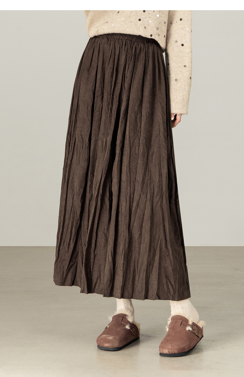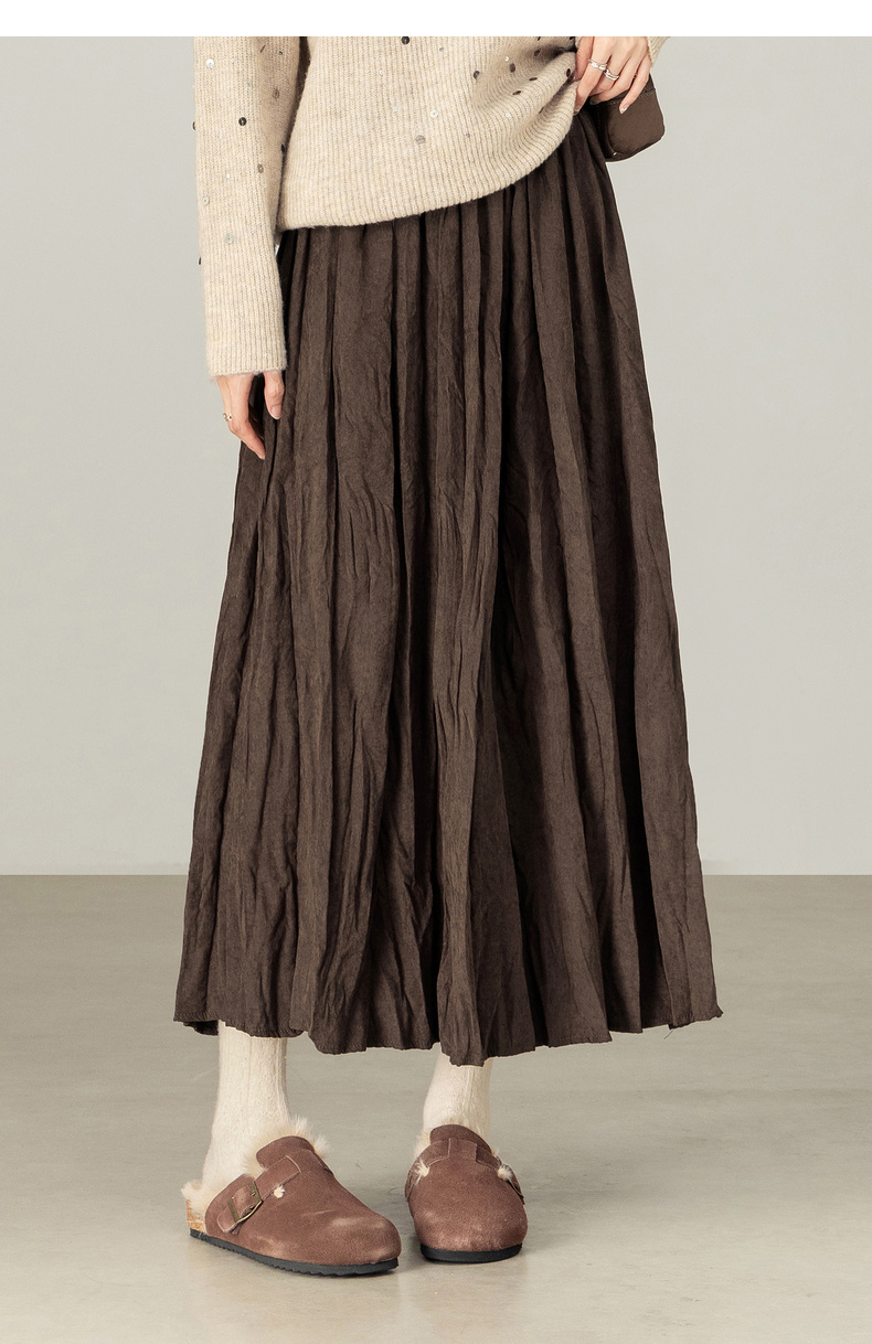 【内购】【遮肉显瘦】通勤松紧腰褶皱纸片感厚保暖宽松A字半身裙-W53QA4139