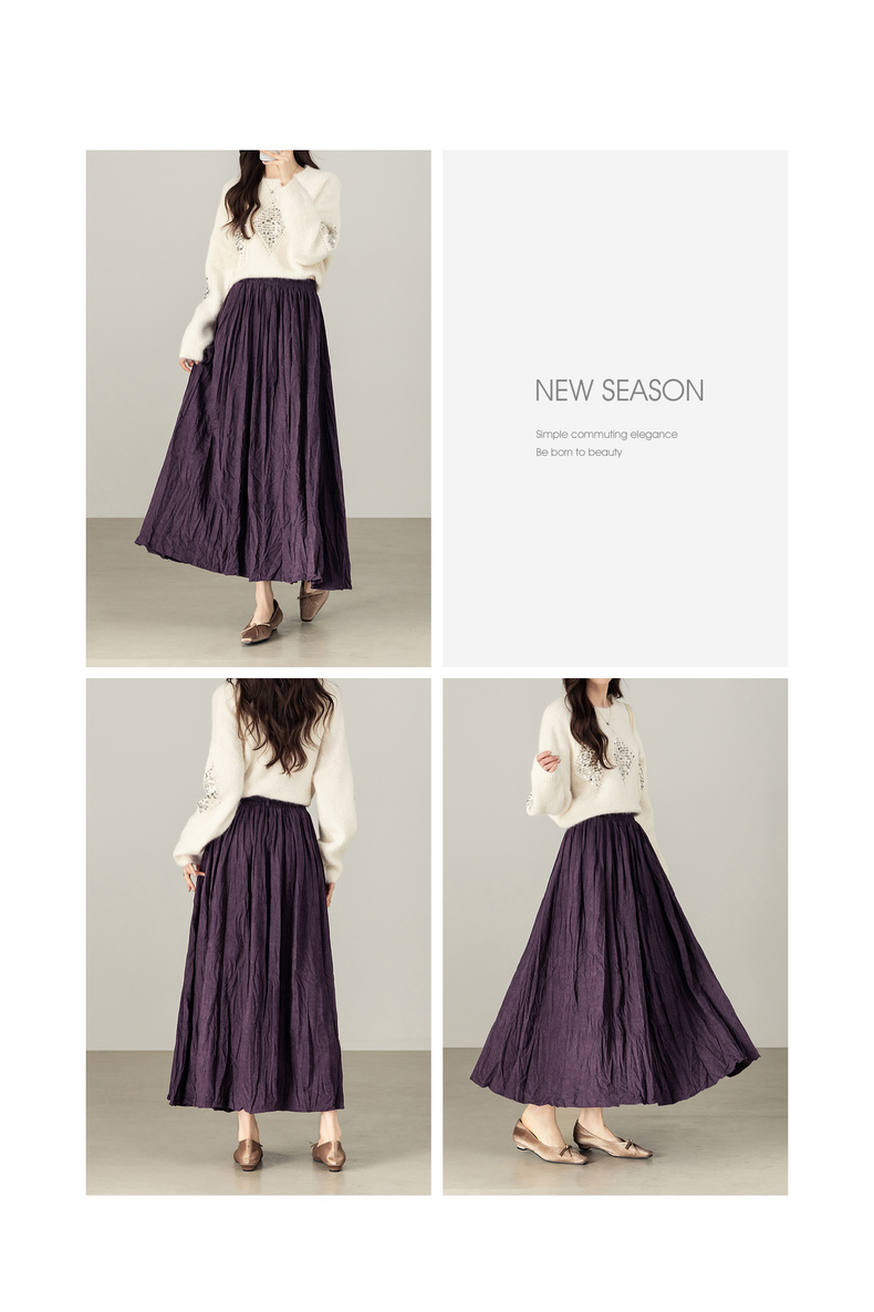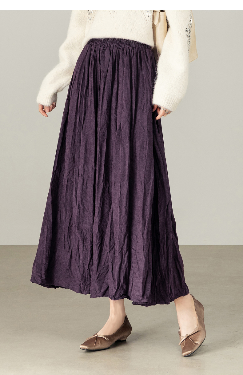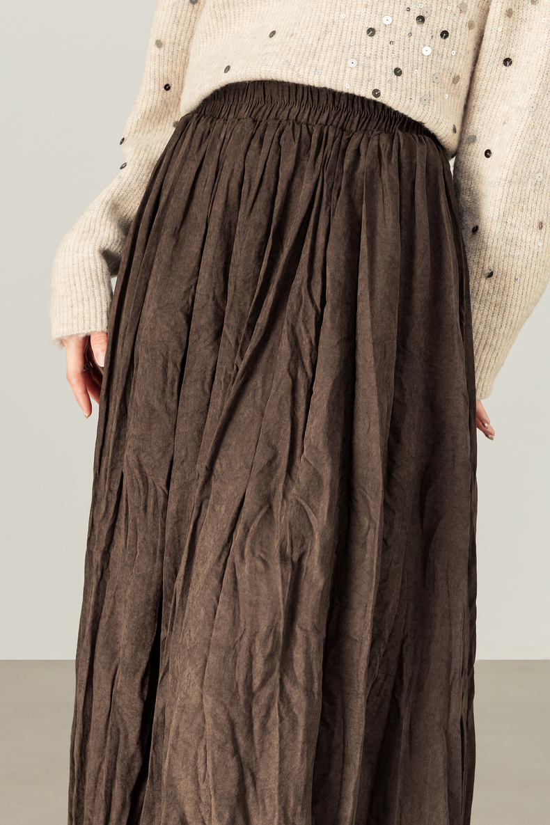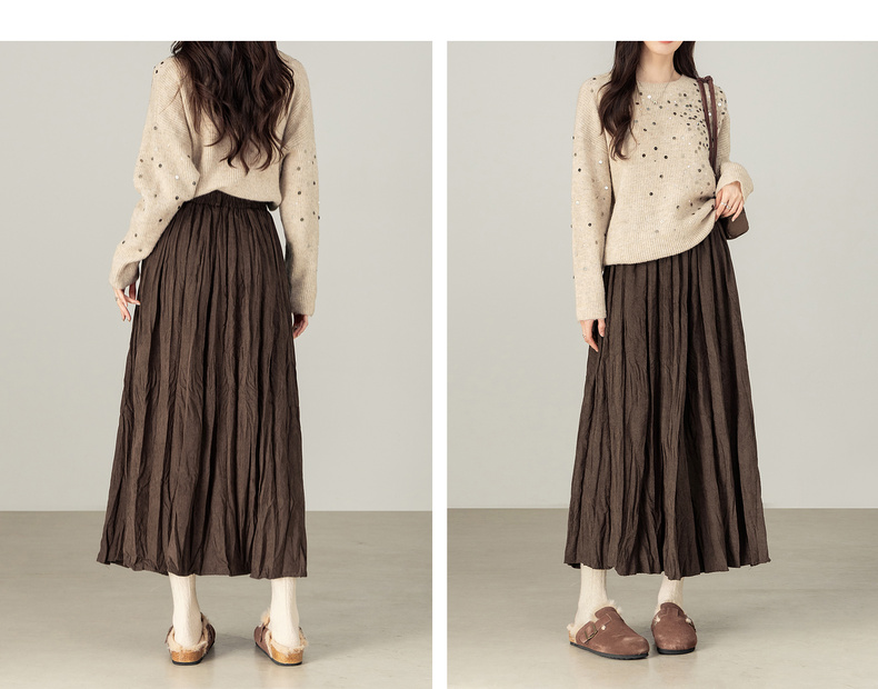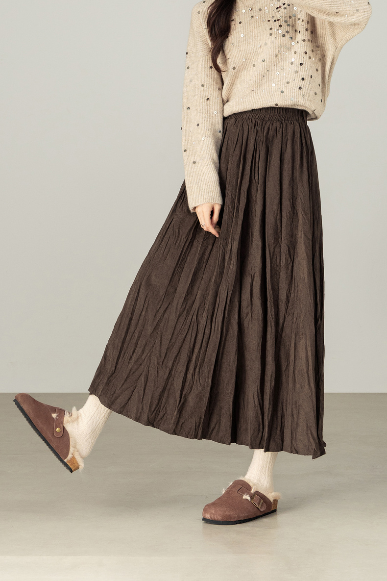 【内购】【遮肉显瘦】通勤松紧腰褶皱纸片感厚保暖宽松A字半身裙-W53QA4139