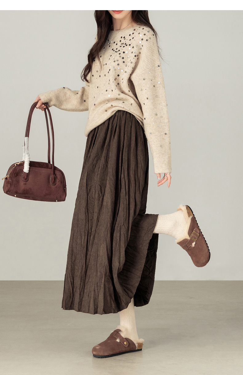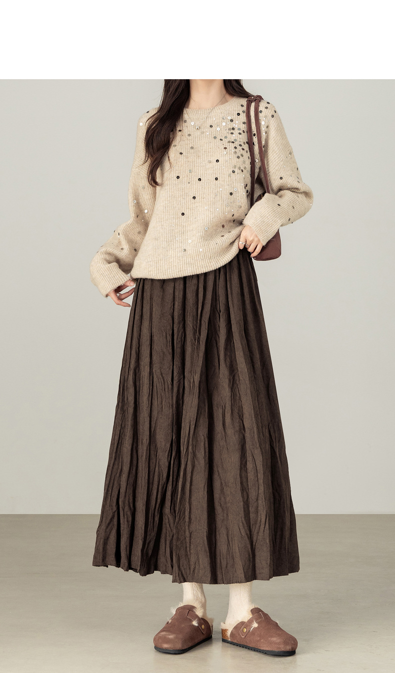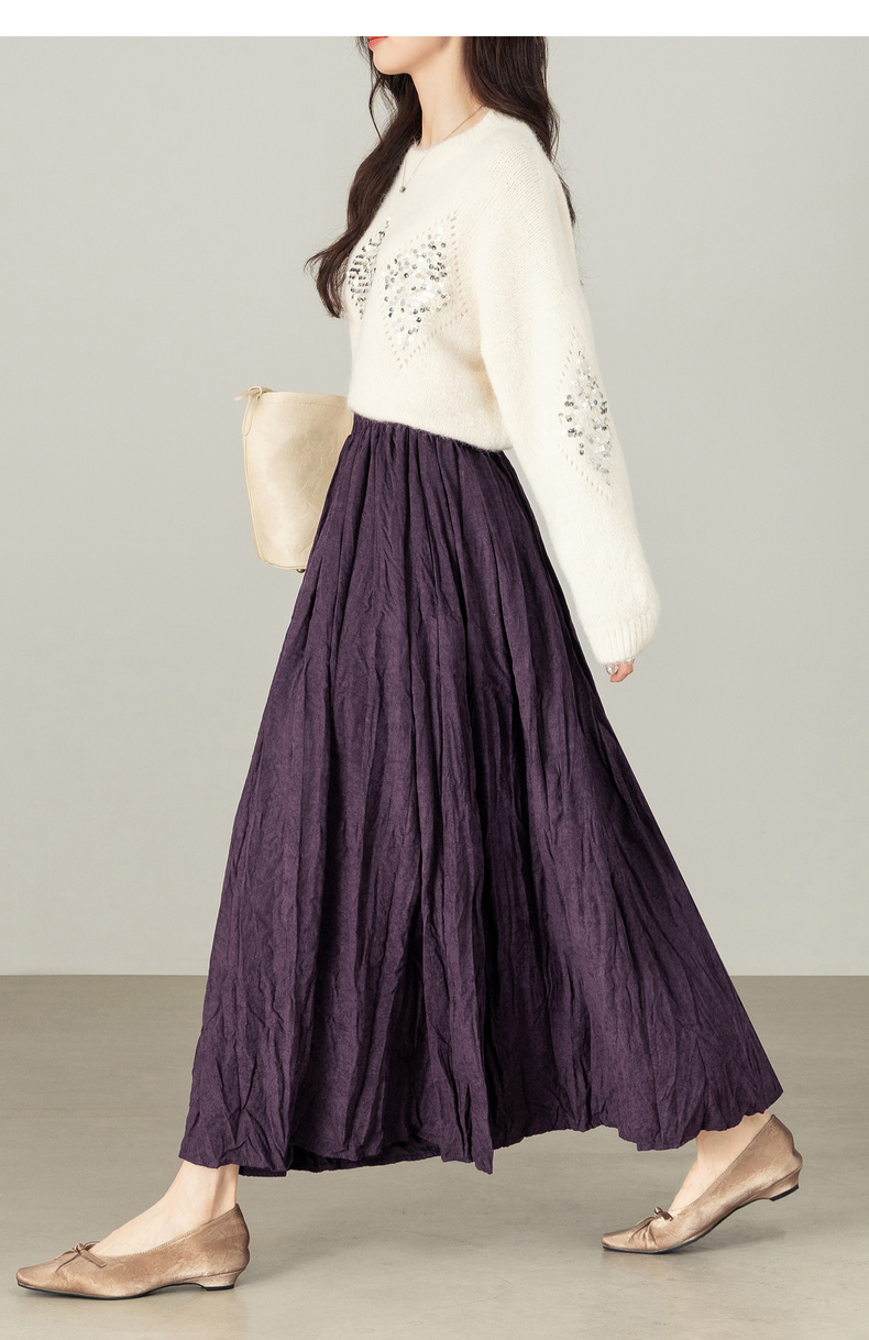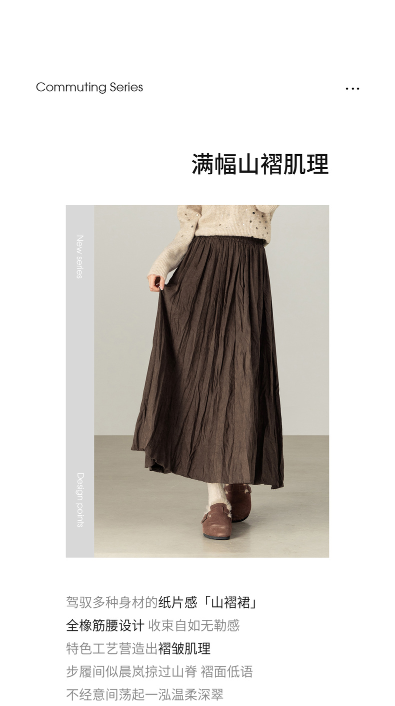 【内购】【遮肉显瘦】通勤松紧腰褶皱纸片感厚保暖宽松A字半身裙-W53QA4139