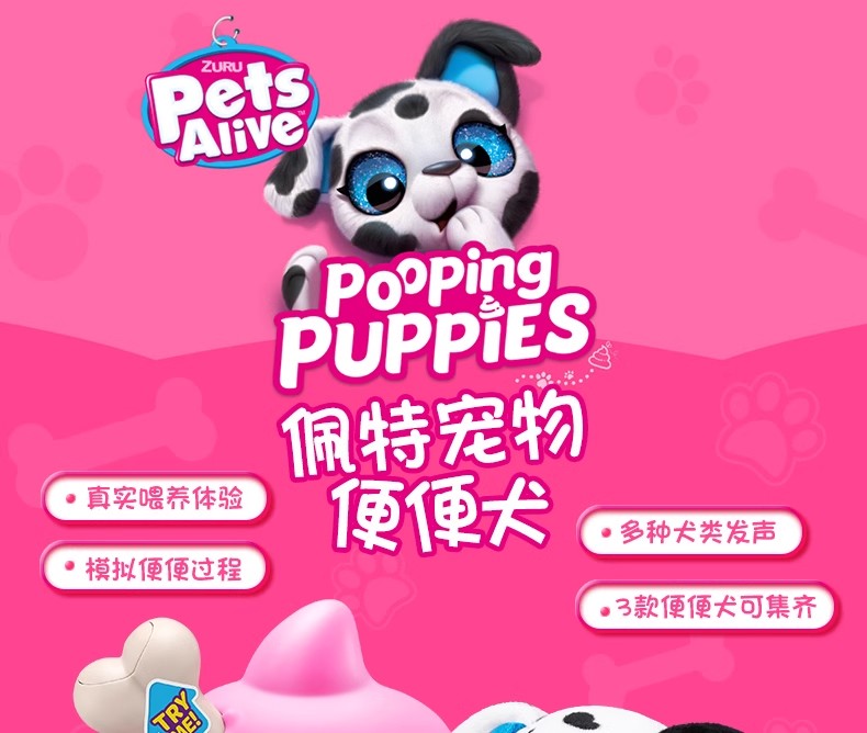 ZURU 佩特宠物便便犬 变变犬儿童电动宠物狗发声毛绒玩偶玩具生日礼物 8岁+