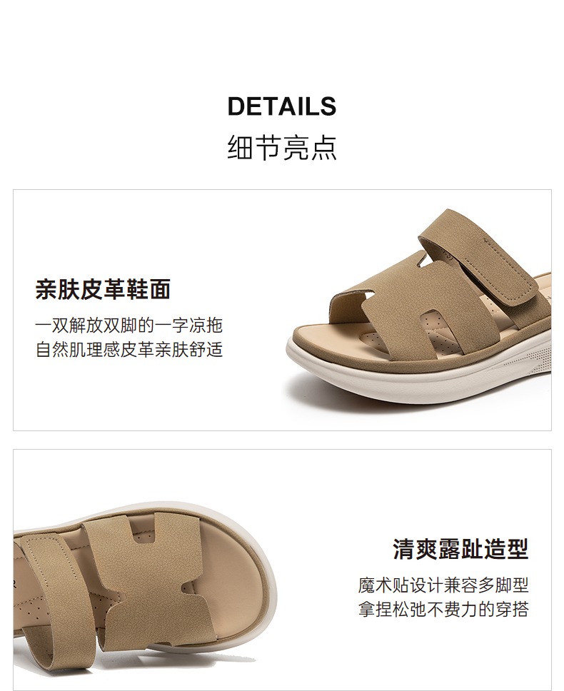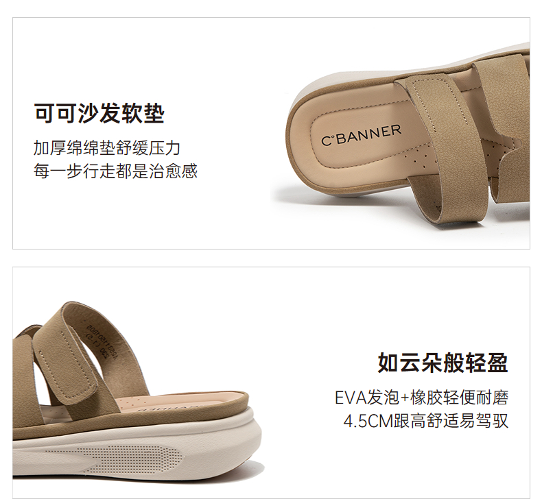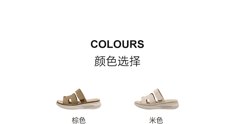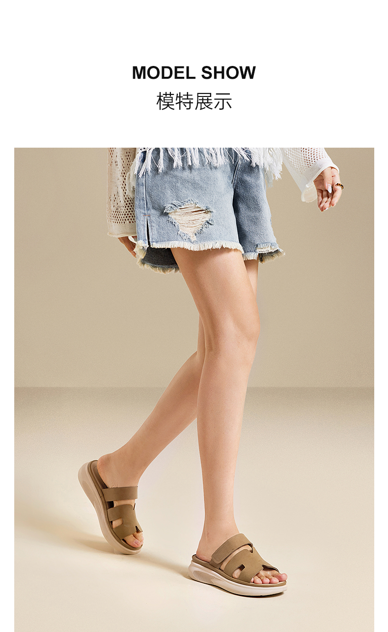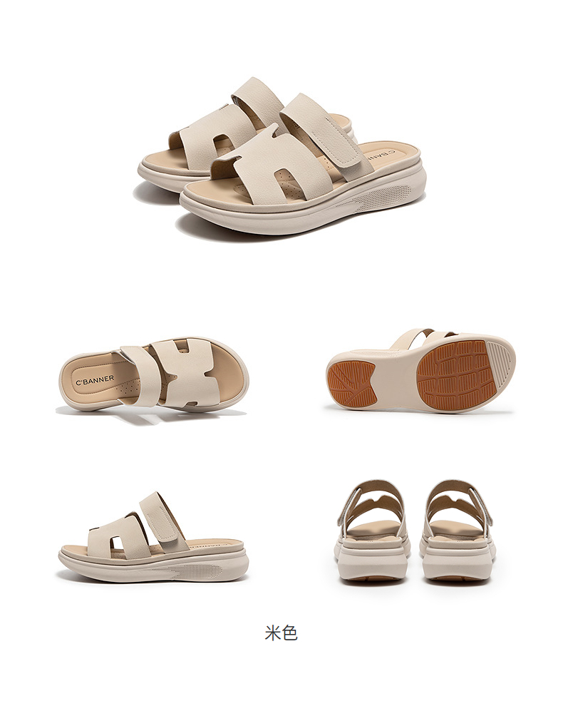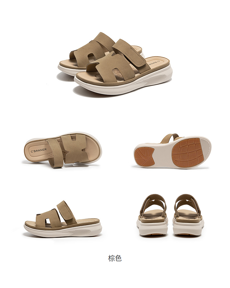 千百度厚底魔术贴露趾一字拖女增高外穿魔术贴凉拖鞋A25311501
