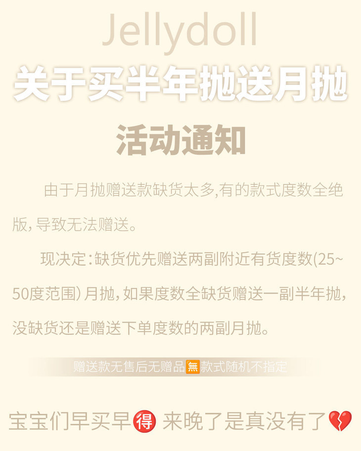 (如遇缺货情况,则赠送附近度数或者半年抛)