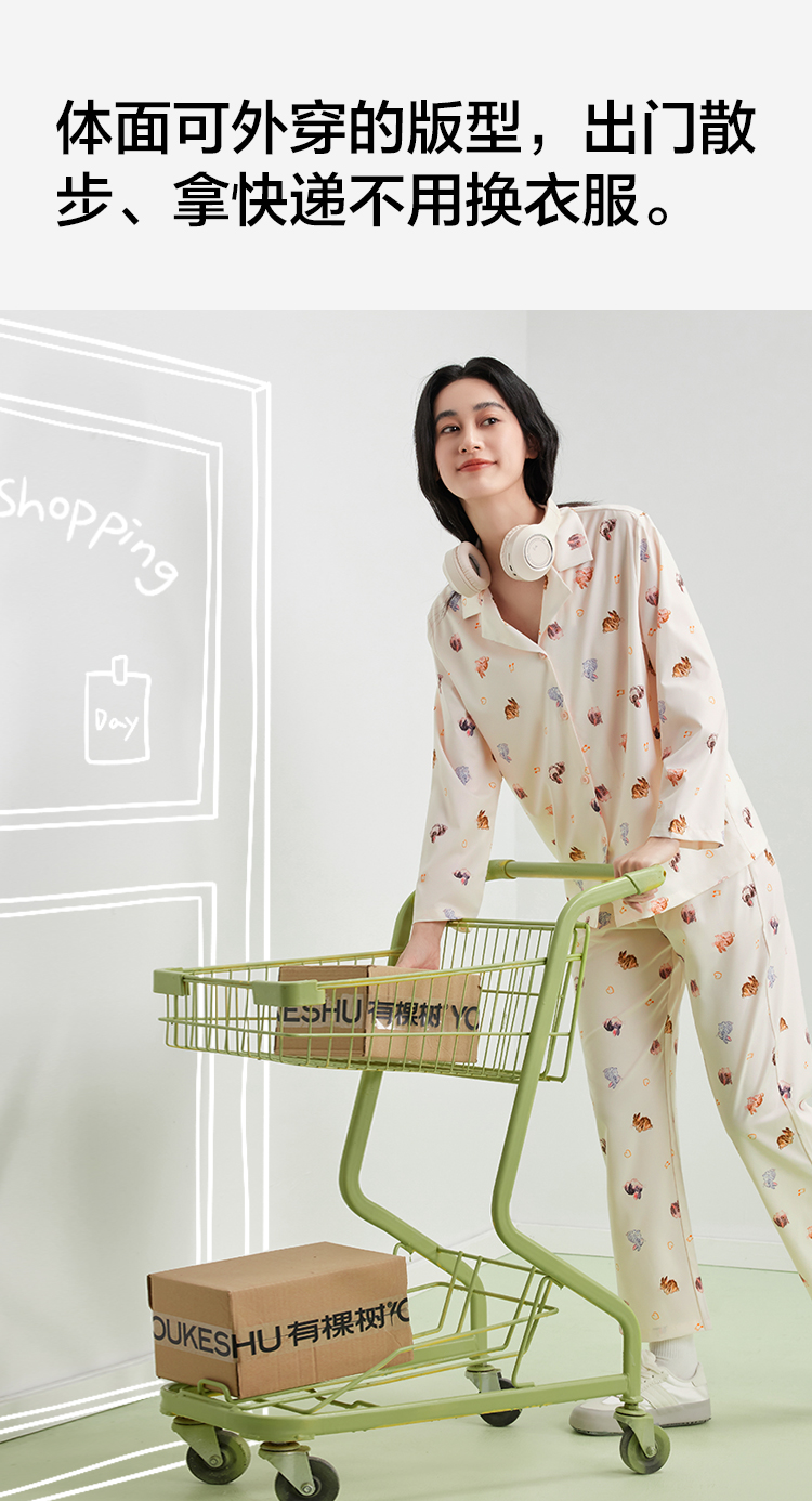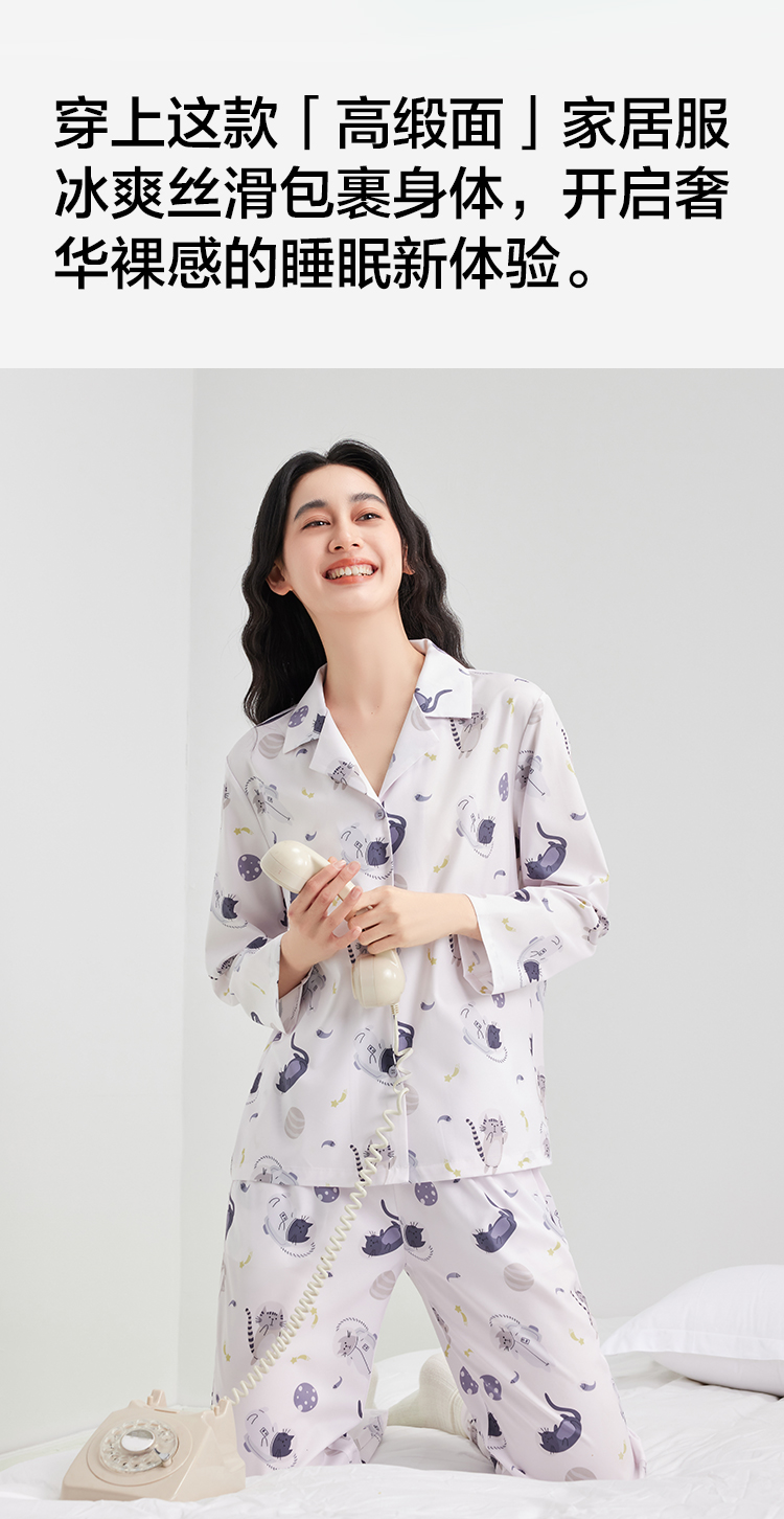 【M-2XL】【有棵树】女士凉感亲肤睡衣开衫套装