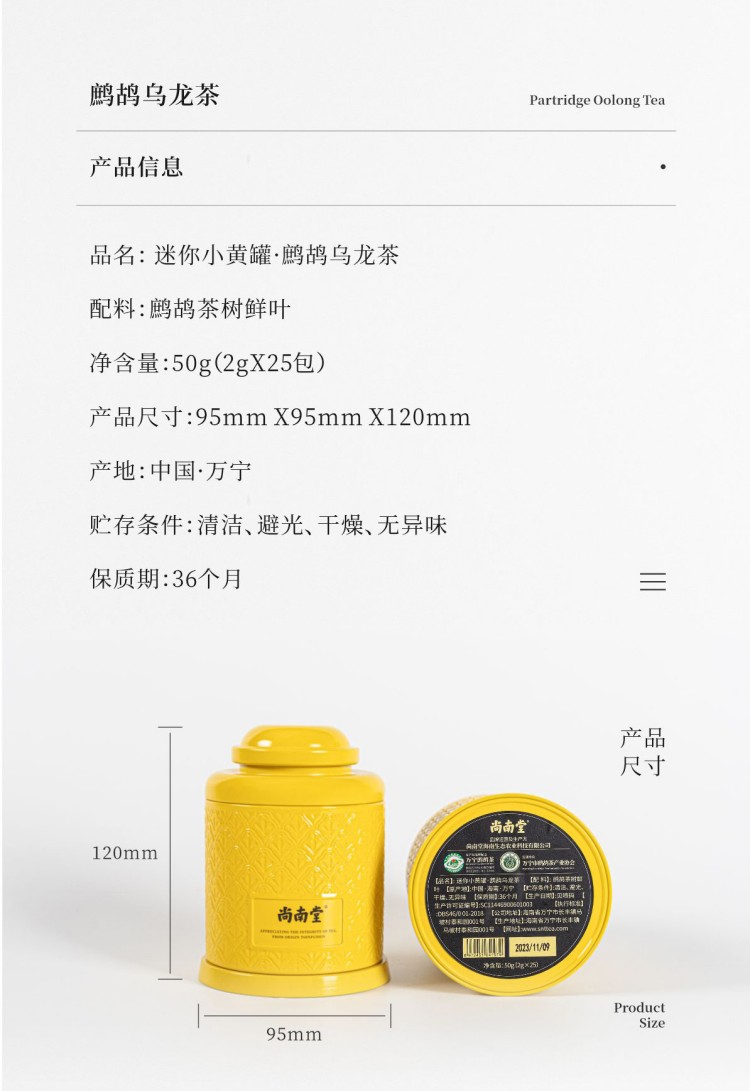 自营(尚南堂)-尚南堂鹧鸪乌龙茶海南特产茶叶伴手礼 迷你小黄罐